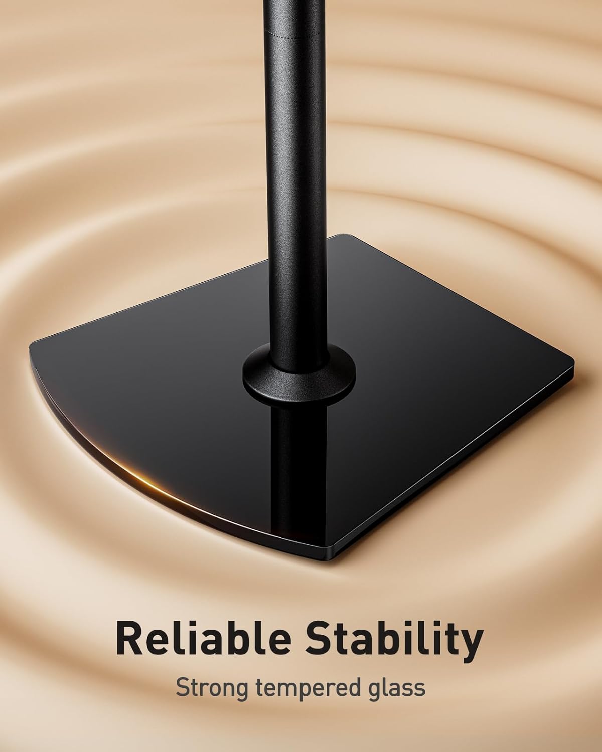 Attractive Design – We provide the universal bracket and sponge for your speakers, which can help prevent the speakers from shaking and give you a better sound. These surround sound speaker stands have a strong tempered glass base with non-slip feet, which can protect your floor from being scratched or damaged.