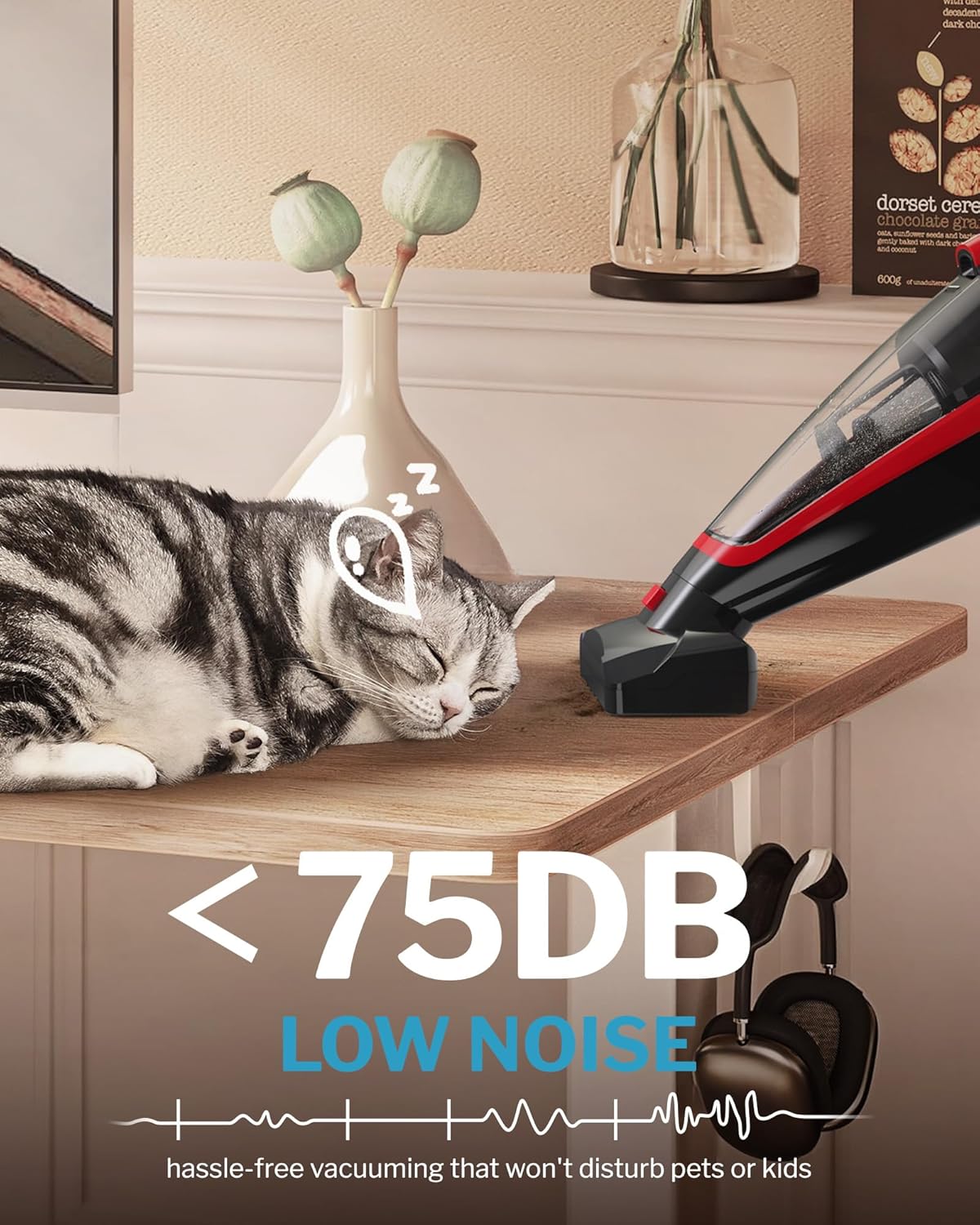 Powerful Electric Brush: Designed specifically for homes with pets, this cordless handheld vacuum features a high-performance electric brush that efficiently lifts pet hair, dander, and dirt. It performs exceptionally well on carpets, bedding, and vehicle interiors, effectively cleaning fabric surfaces from embedded debris.