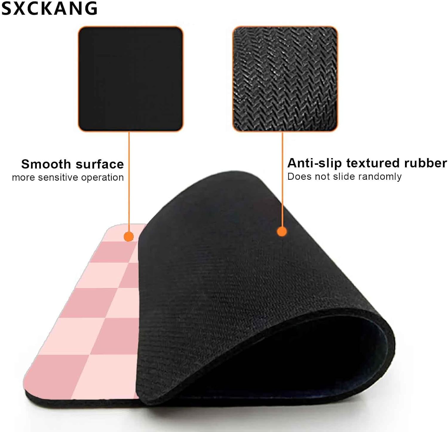 Pink Mouse Pad, Checkered Pattern Mousepad, Square Premium Texture Computer Cute Mouse Pad Design for Office Work Home, Non-Slip Rubber Gaming Mouse Pads for Computer Laptop, Modern Aesthetic