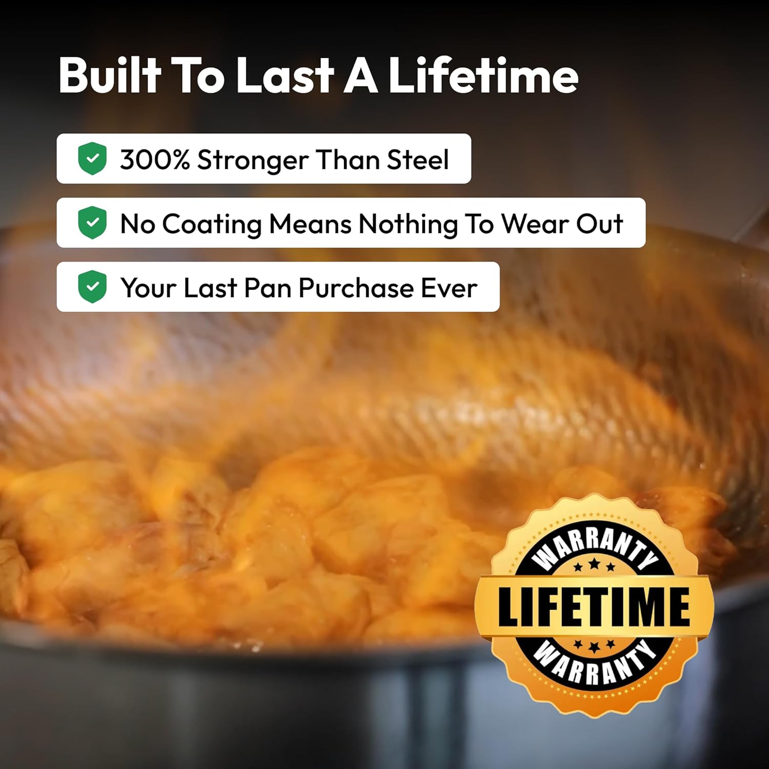 BUILT FOR LIFE: Unlike traditional nonstick, the titanium fry pan withstands metal utensils, repeated dishwashing, and daily wear. Engineered as titanium pro cookware, it’s designed to last a lifetime in busy kitchens.