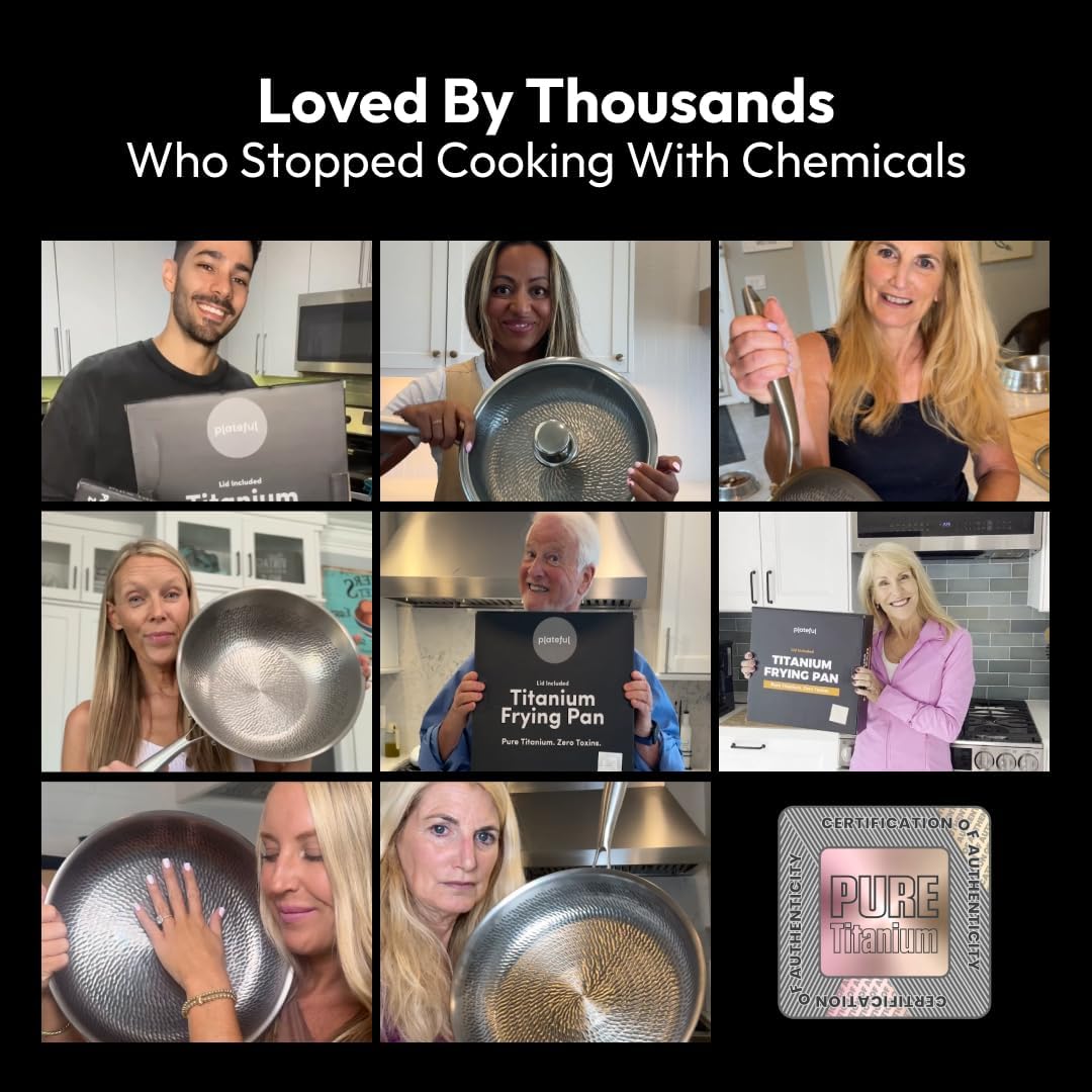 PURE TITANIUM SURFACE: Crafted with SGS-certified titanium, this titanium frying pan delivers naturally smooth cooking surface without coatings. Unlike many titanium pans for cooking non stick, it resists scratching, warping, and chemical breakdown.
