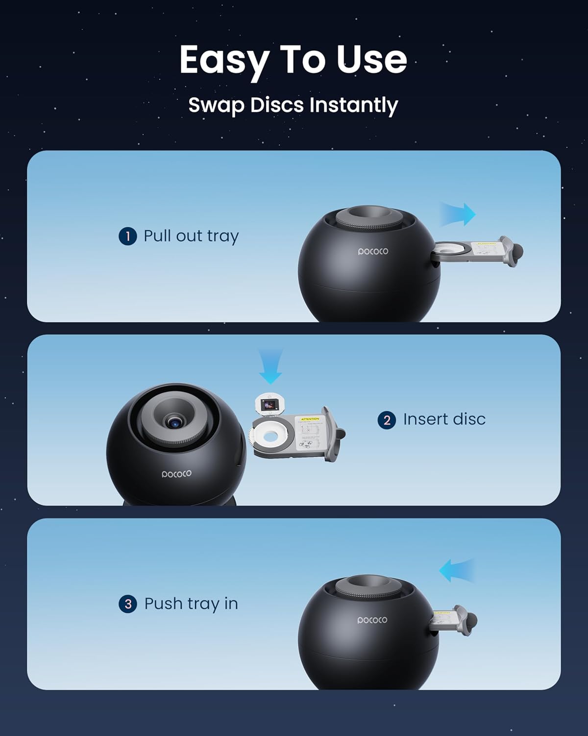 Authentic Galaxy Patterns & Rotation: Explore a collection of discs featuring real constellations, dense starfields, our Milky Way galaxy, and planets. The projected images slowly rotate, mimicking the natural movement of the real night sky, bringing the breathtaking beauty of the universe into your home.