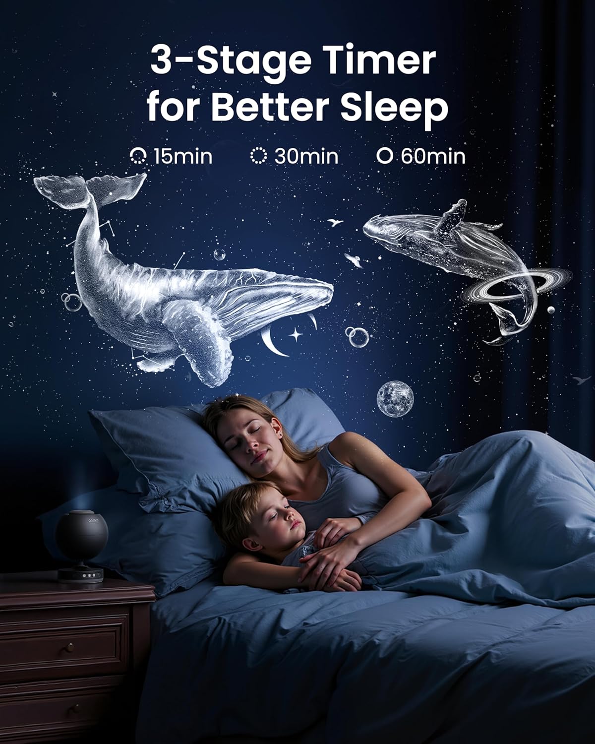 Create a Relaxing Sleep Sanctuary: Drift off peacefully under a mesmerizing starry sky. POCOCO galaxy projector with the ultra-low-power 1W LED projects gentle patterns that are easy on the eyes, promoting relaxation and reducing anxiety for better sleep. The built-in auto-off timer (2 hours) ensures energy efficiency and peace of mind.