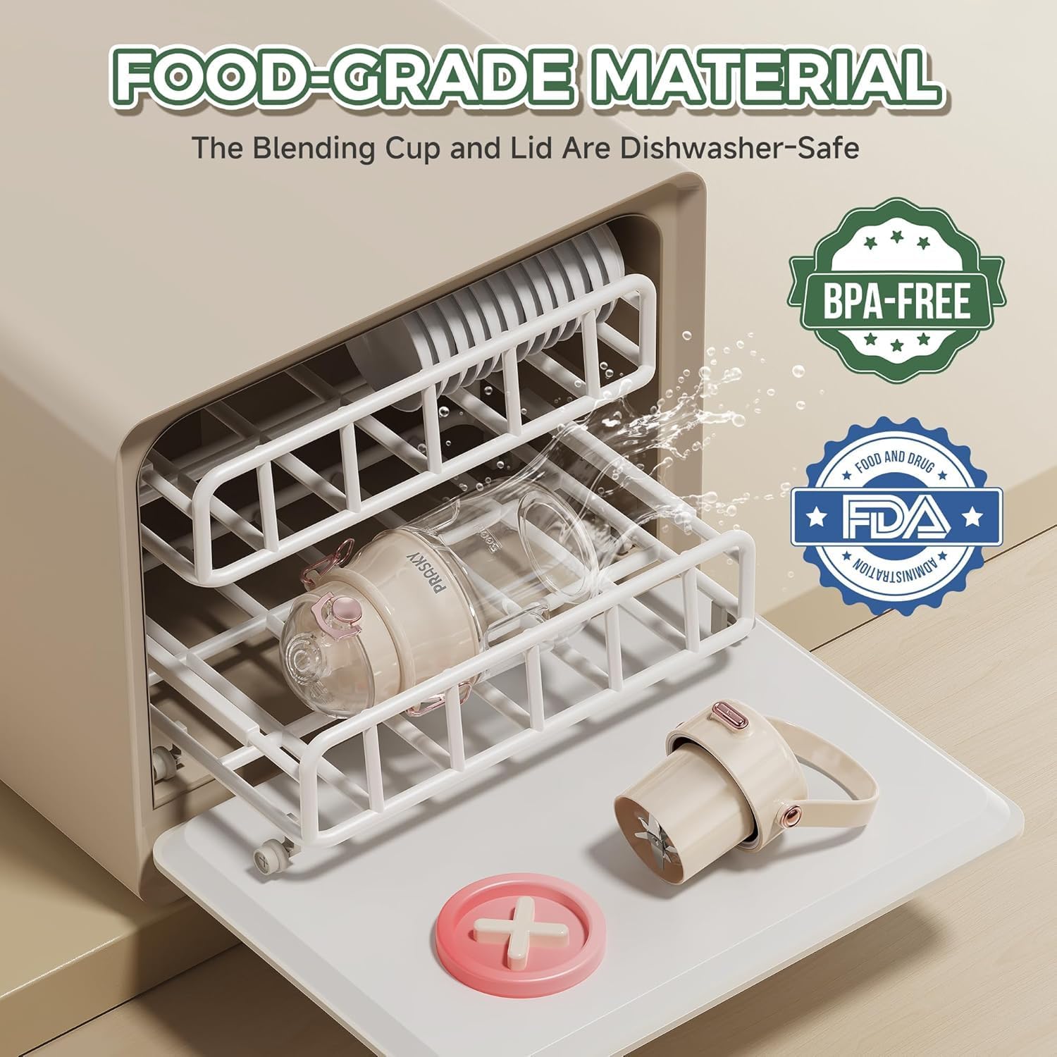 [BPA-free, Easy to Clean] Our blender juicer is made of BPA-free materials, ensuring healthy drinking. The 304 stainless steel blade, 7.4 voltage rating, features high-speed spinning performance, and its easy-to-remove and clean design makes maintenance a breeze. The blade assembly can be rinsed directly under the tap and the container can be washed in the dishwasher. (Do not immerse the motor in water)