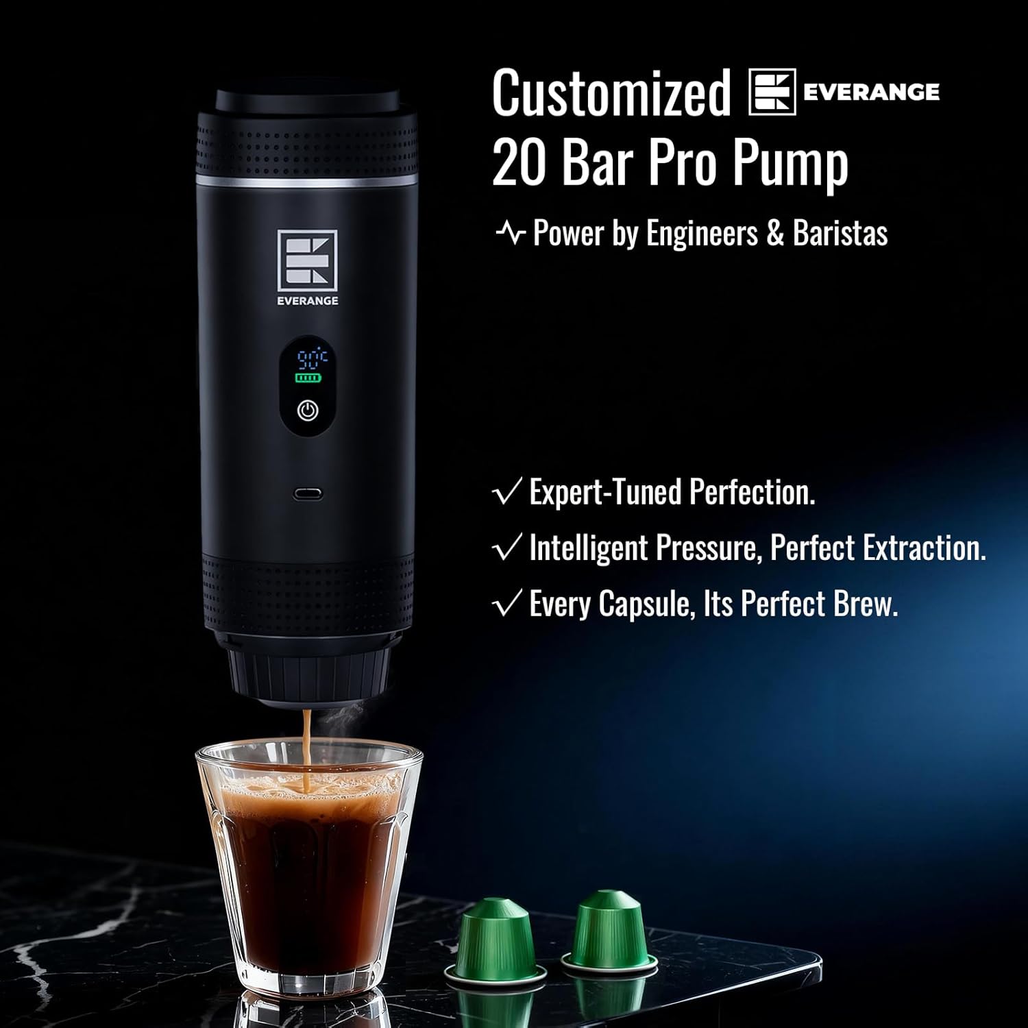 Reliable & Leak-Proof Design Electric Mini Espresso Coffee Maker: Built for durability and portability, the EVERANGE espresso machine features a leak-proof and insulated design to ensure safe, mess-free brewing. Plus, this portable coffee machine comes with 6-month customer support to assist you with any questions or concerns.