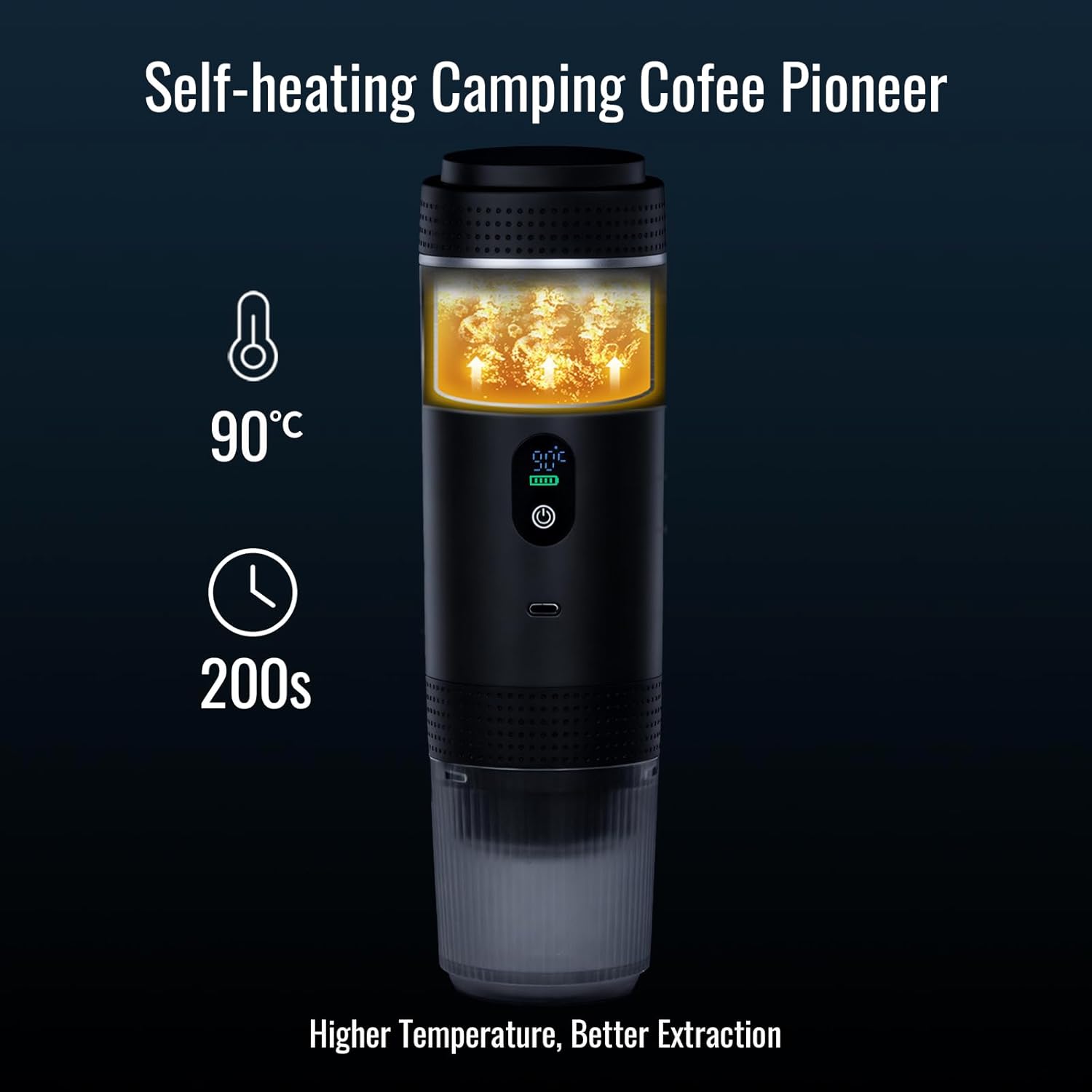 Fast Self-Heating & Rich Crema: In just 3-5 minutes, the self-heating system heats 2.7oz of water from 76°F to 187°F, while the 20-bar pressure ensures smooth espresso extraction with a rich, velvety crema. Get professional-quality results in no time! 20 Bar Mini Small 5V Car Coffee Maker for Travel Camping