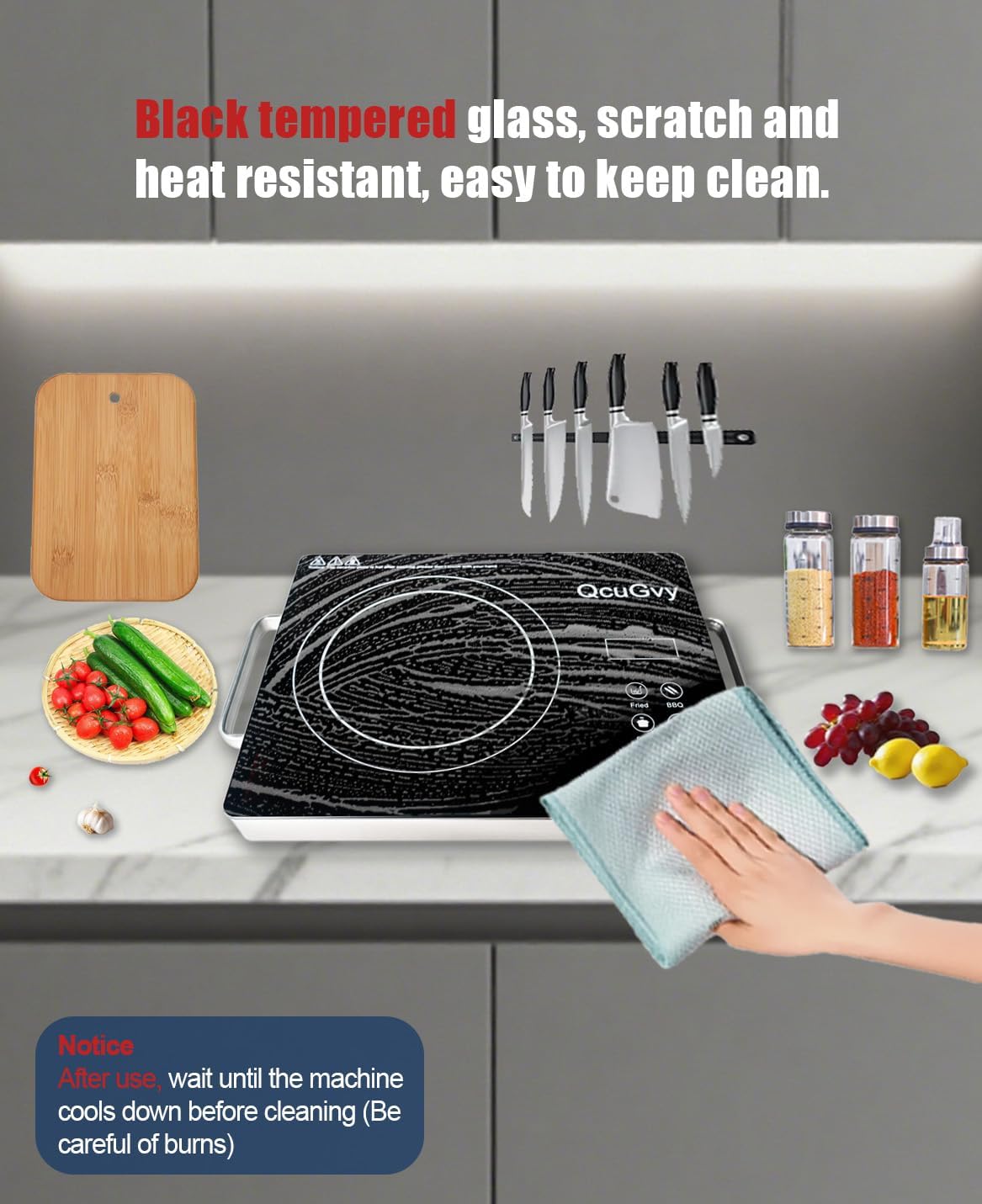【High-Quality Glass】The surface of the electric hot plate is made of high-quality glass material, which is durable, scratch resistant, high temperature resistant, and easy to clean with a wet cloth.(Wait for it to cool before scrubbing to prevent burns)