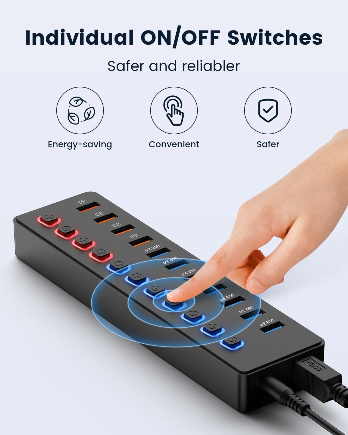 Partition Independent Switch: usb hub for pc is equipped with partition independent switch buttons, and each button switch controls the corresponding port. The switch is equipped with LED working indicator light, which can distinguish the working state, selectively operate and save electricity and energy
