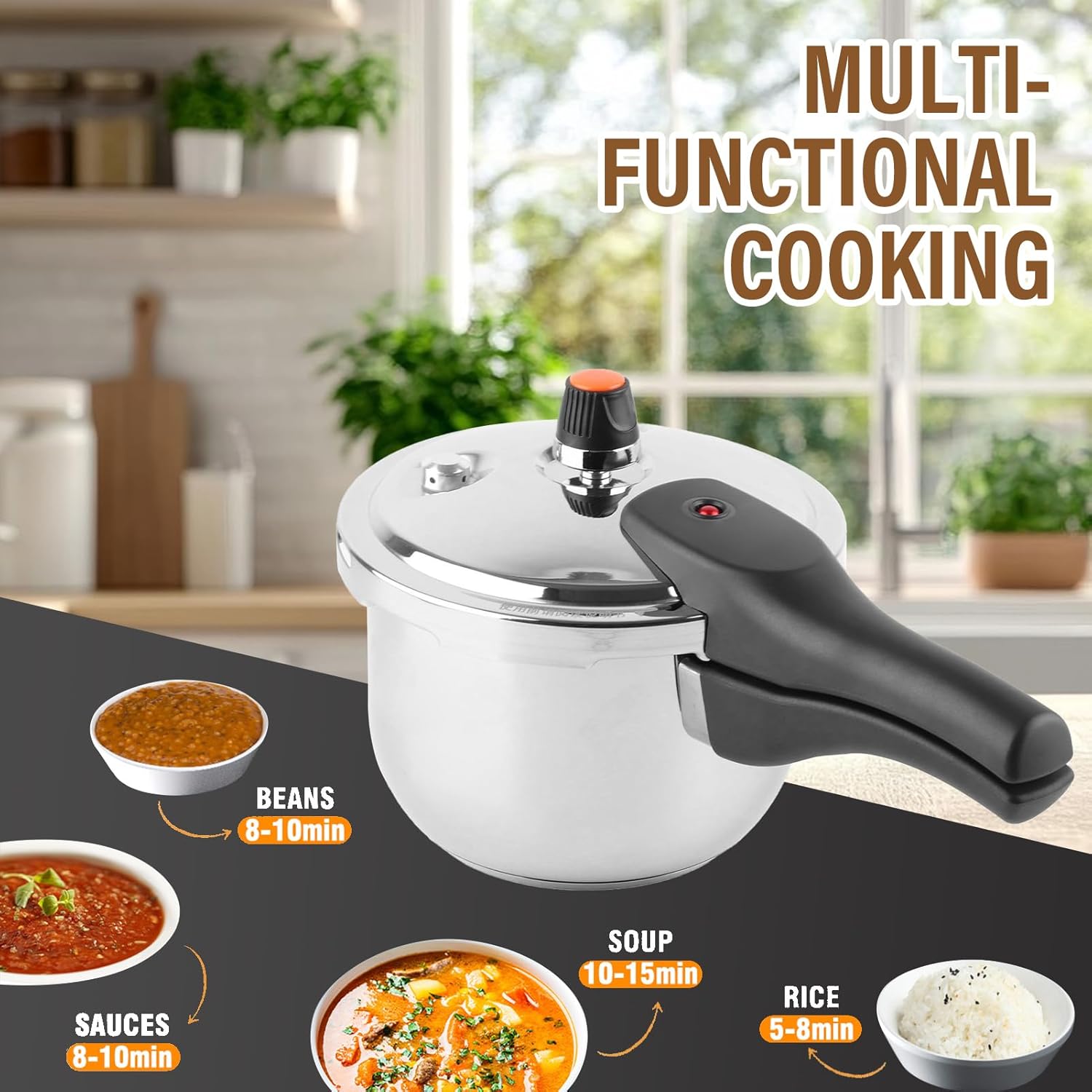 MULTIFUNCTIONAL DESIGN: Stainless Steel Pressure Cooker is designed for versatility. It can accomplish more than just cooking rice and stewing. With its multifunctional capabilities, it can also steam, make porridge, cook noodles, and much more. Experience the convenience and practicality of a pressure cooker that meets all your cooking needs.