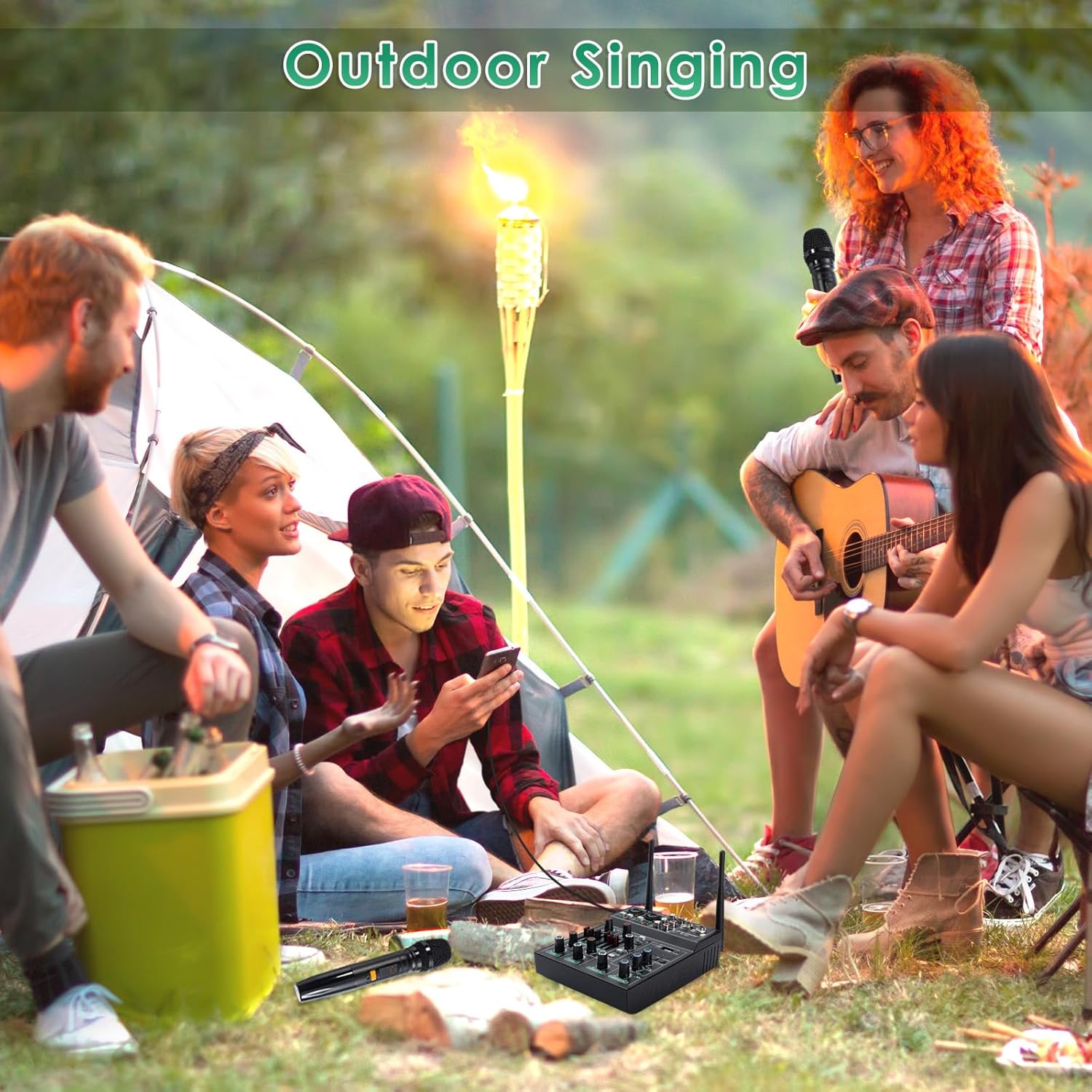 【5-Channel Audio Mixer with 2 Wireless Microphones】 – This 5-channel audio mixer comes with 2 UHF wireless handheld microphones, offering a wide range of audio adjustment features. Each channel can be independently adjusted to ensure the best audio mixing for different sound sources. The wireless reception range is up to 180 feet, providing stable wireless audio transmission, ideal for most entertainment settings.
