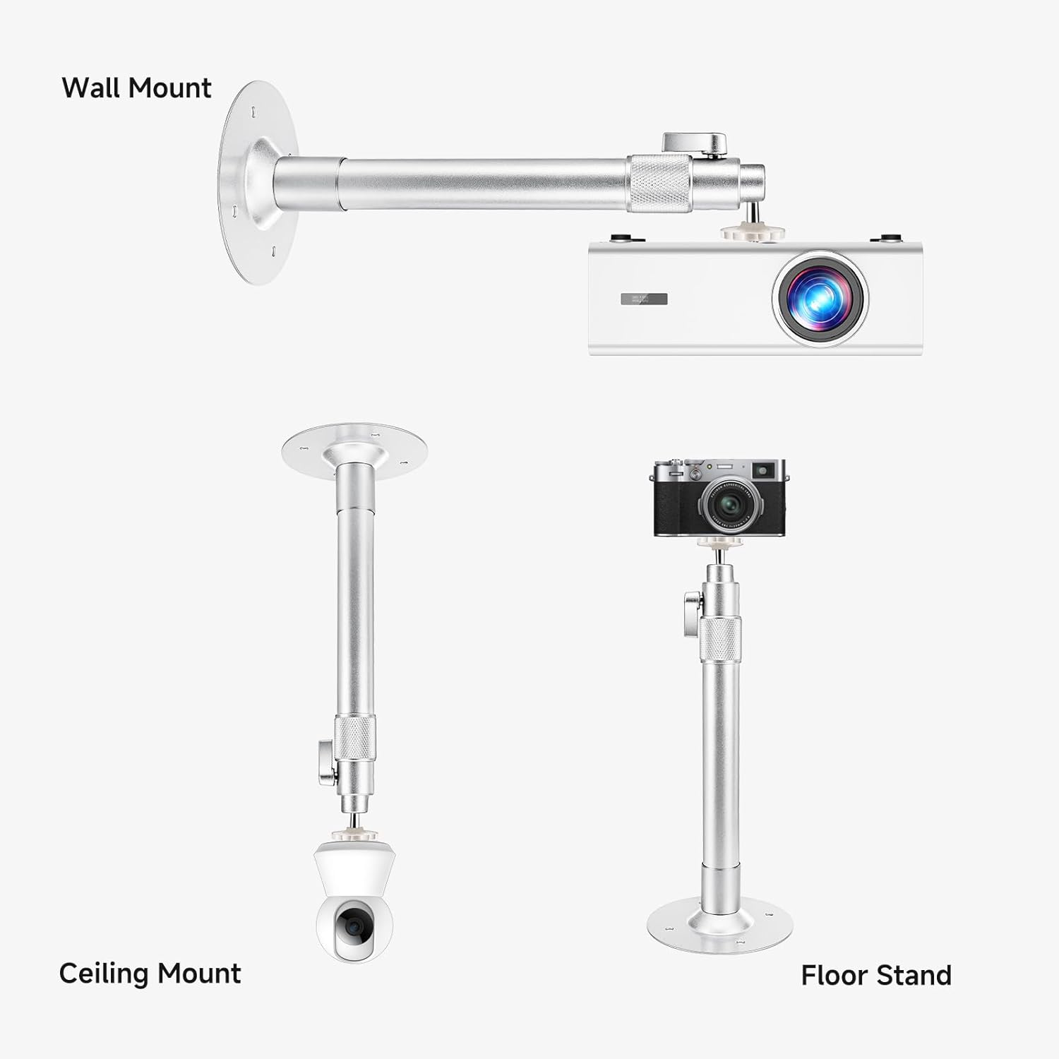 Universal Compatibility & Multi-Use Design: This 2-in-1 ceiling and wall mount works with nearly all projectors, DSLR cameras, camcorders (DV), and other devices that feature a standard 1/4″-20 threaded mounting hole. Whether you’re setting up a home theater, conference room, or studio, it delivers reliable, professional-grade installation in minutes.