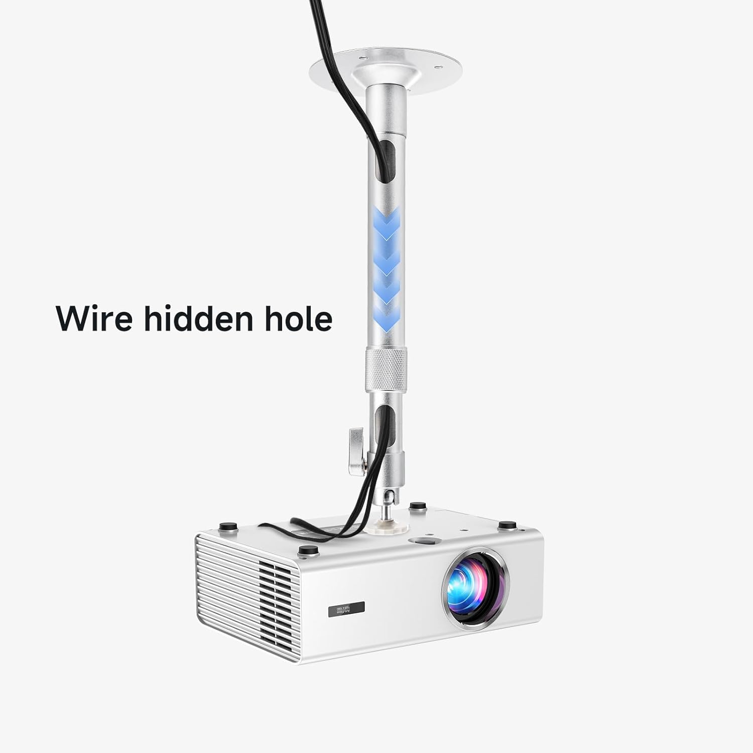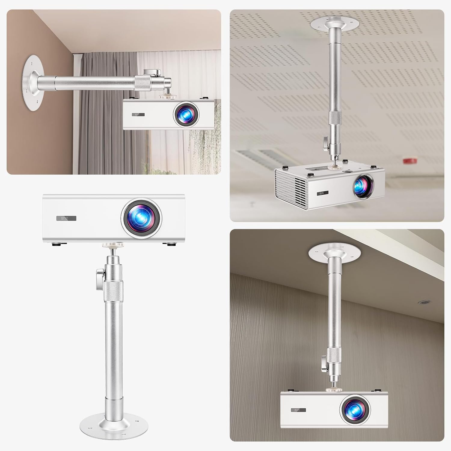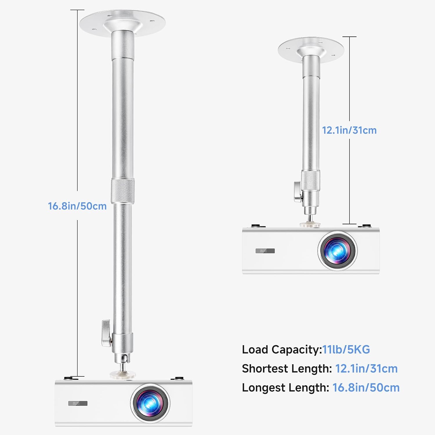 Extended Reach for Perfect Placement:The ceiling mount bracket extends from 12.1 to 16.8 inches (31–50 cm), offering flexible height adjustment to achieve the ideal projection distance. Simply fine-tune and lock the bracket at the optimal height to eliminate image distortion and ensure a perfectly aligned, edge-to-edge sharp picture—ideal for rooms with varying ceiling heights or custom screen setups.