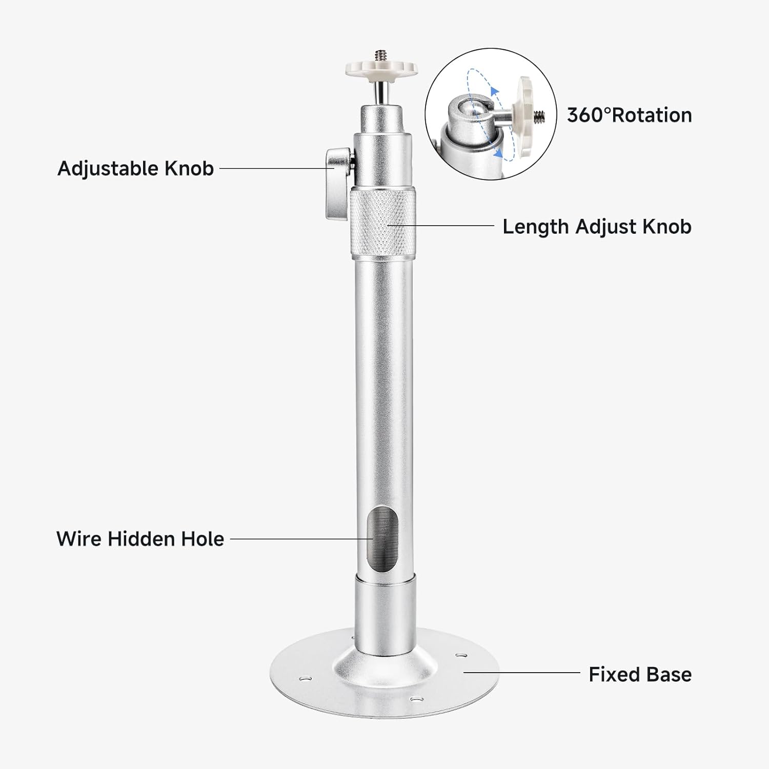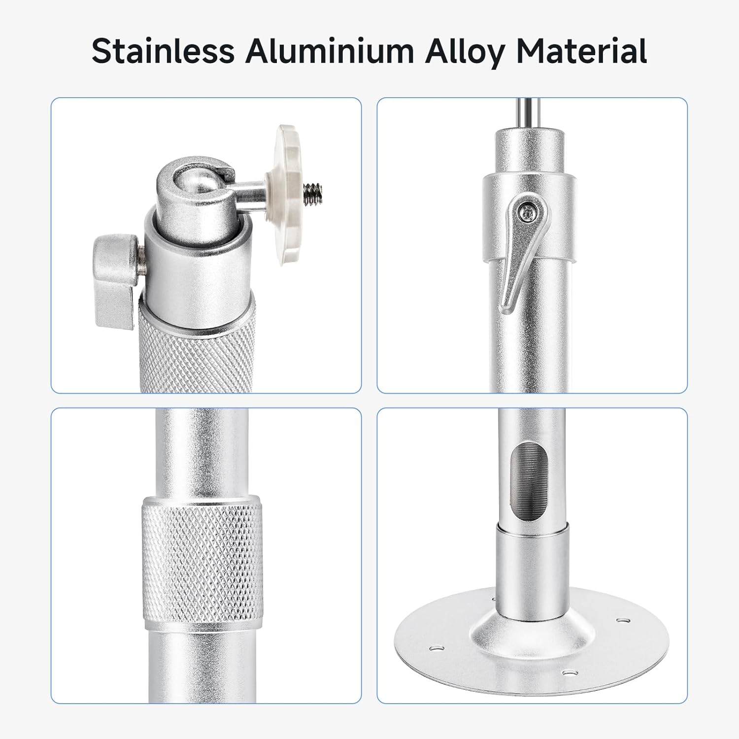 Premium Build for Maximum Stability: Crafted from heavy-duty aluminum alloy with a reinforced base and diamond-pattern stainless steel finish, this mount combines sleek style with industrial strength. Integrated cable management holes keep wires tidy, while the solid locking lever ensures long-term stability. Supports up to 11 lbs (5 kg)—more than enough for most projectors, cameras, or audio devices.