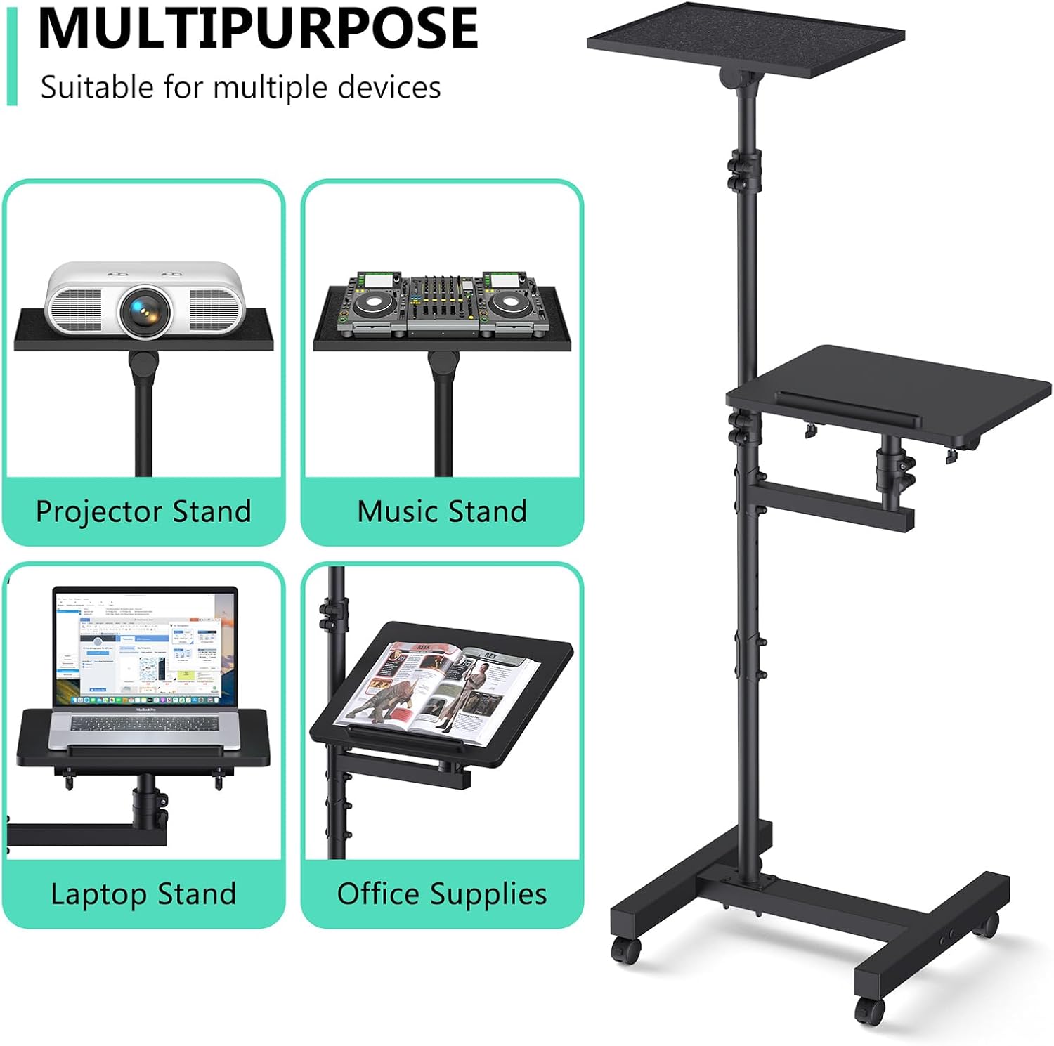 Versatile Dual-Trays Design: This multifunctional projector stand boasts two adjustable trays, enabling you to mount multiple devices such as projectors, laptops, or DJ equipment simultaneously