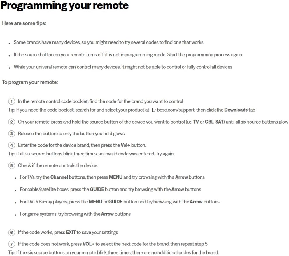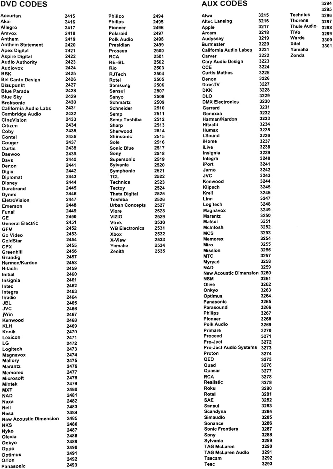 2) Find the appropriate code for your source brand (No additional setup code is required for bose).