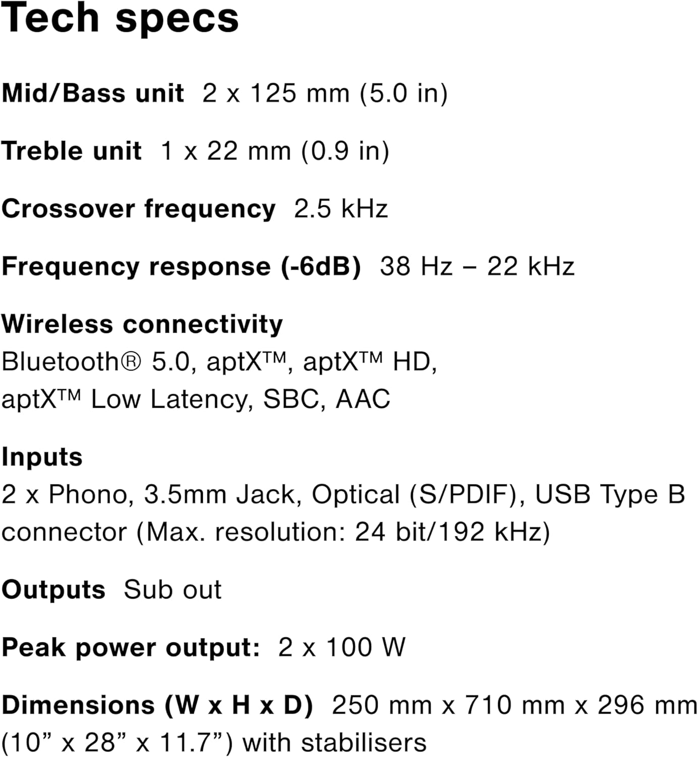 High resolution wireless streaming: The M40 is able to deliver stunning stereo sound no matter where it’s coming from. On board Bluetooth 5.0 provides rock-solid wireless connectivity and is compatible with aptX HD and aptX Low Latency technology – so high-resolution sound (up to 24bit/48kHz) can be streamed from any compatible device such as a smartphone, laptop or tablet.