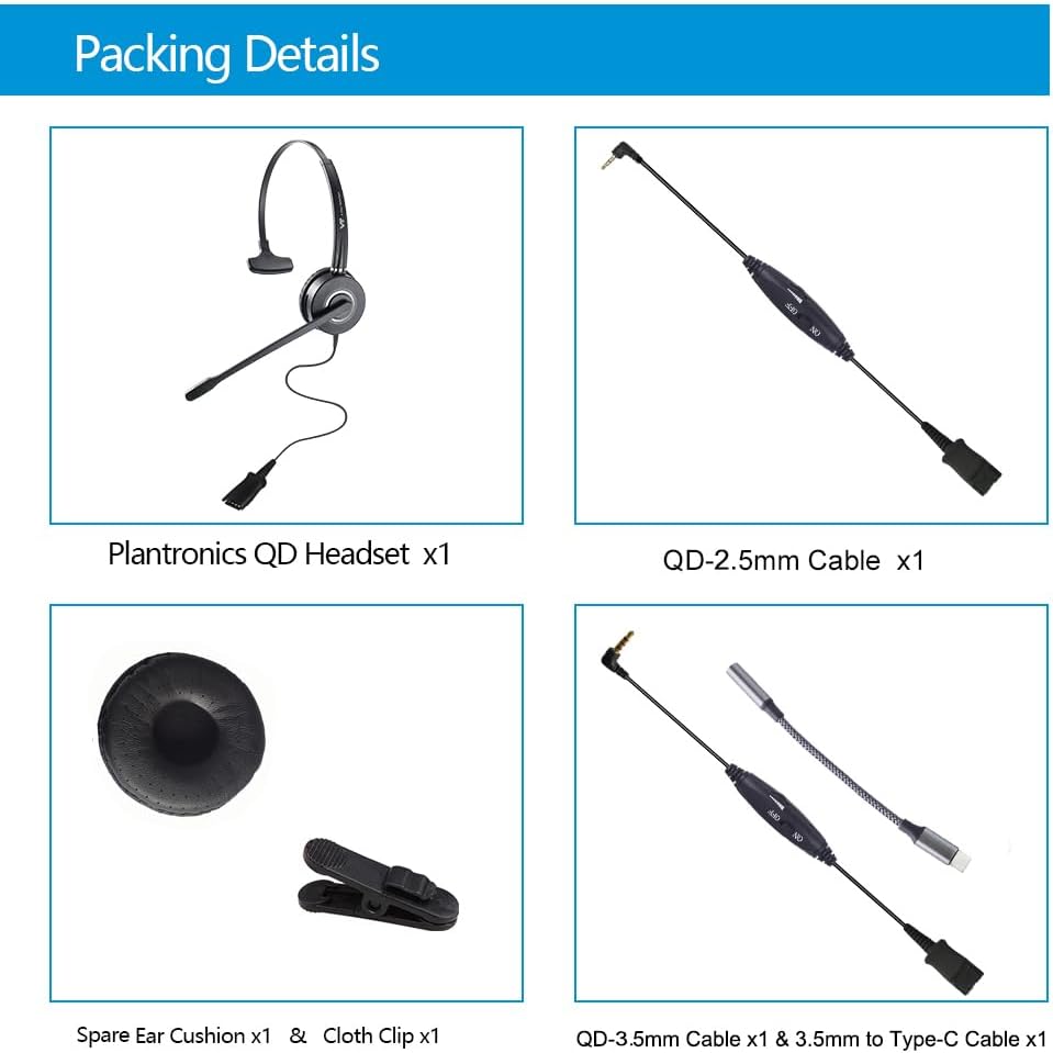 【For IP Phones】The Plantronic-QD headset with QD-2.5mm cable can be compatible with desk phones with standard 2.5mm plug, such as Panasonic,Cisco,AT&T,Polycom,Grandstream,Uniden,Gigaset,Zultys Technologies,etc.