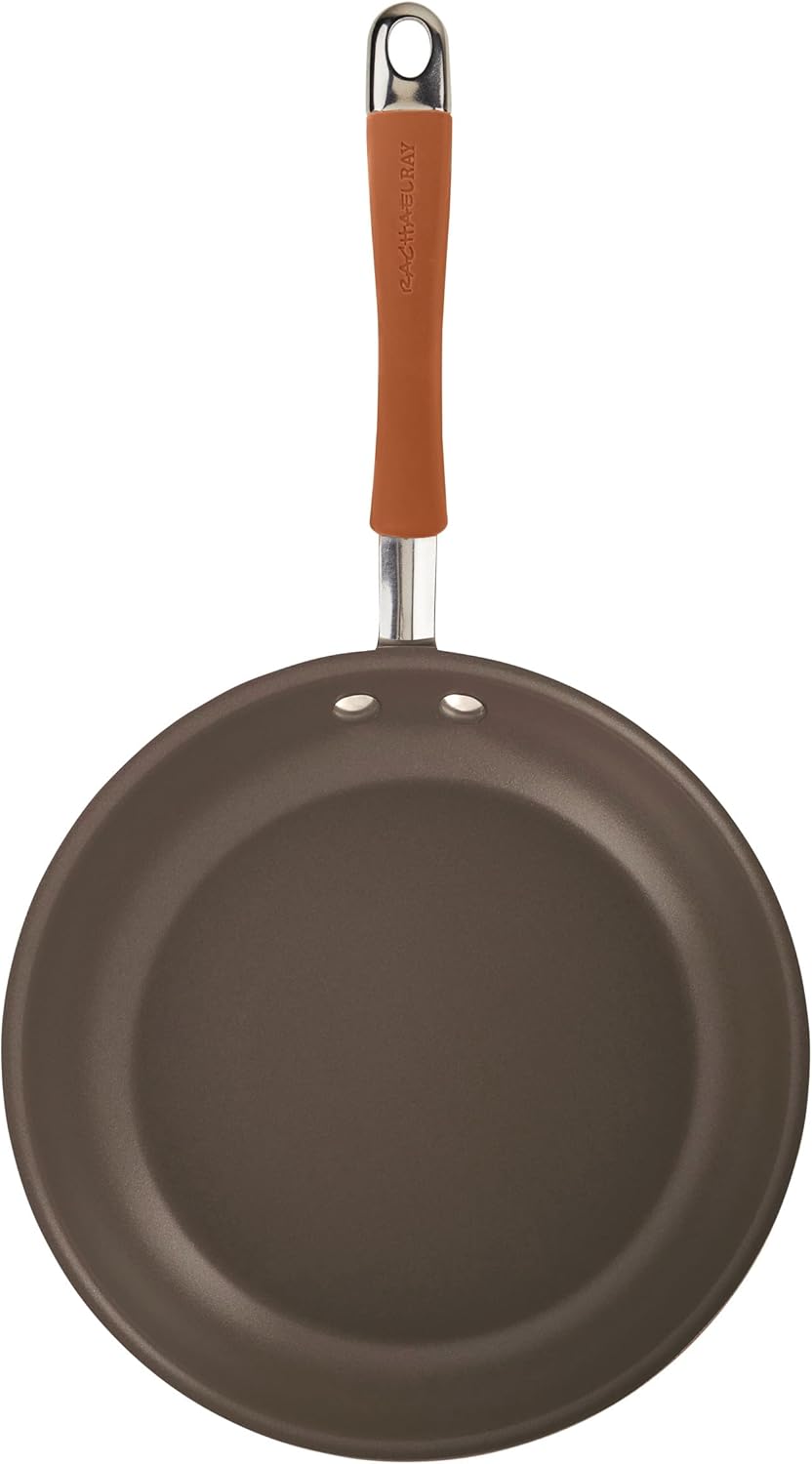 Rachael Ray Cucina Dishwasher Safe Hard Anodized Nonstick Cookware Pots and Pans Set, 12 Piece, Gray with Orange Handles