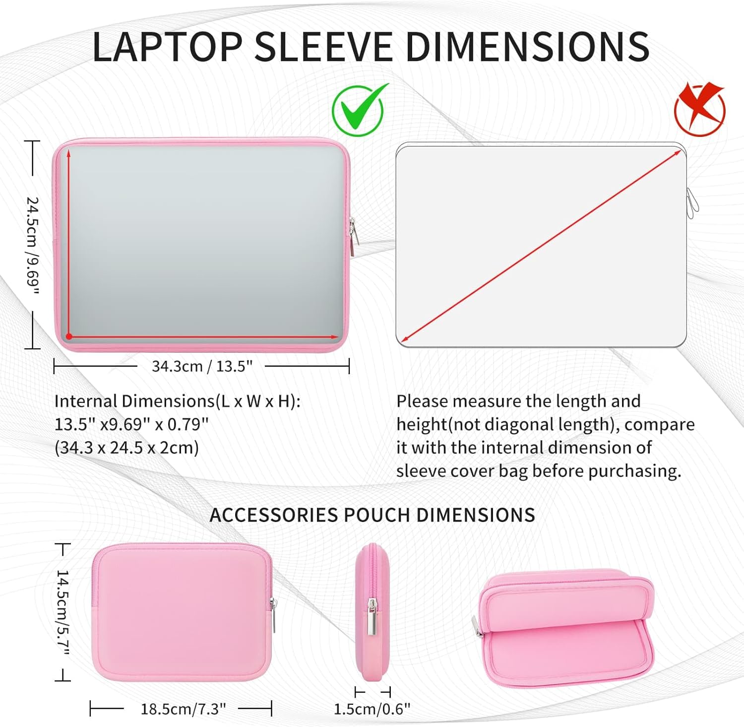 NOTICE: The 14″ case is a universal model for most 14″ Laptop/ Notebook/Chromebook. Notice that we recommend the 13″-13.3″ case for the 14″ MacBook Pro M1 M2 M3 M4. External Dimensions:13.98″ x 9.84″ x 0.79″;Internal Dimensions:13.50″ x 9.69″ x 0.79″. If you especially need a snug fit or a loose fit, please compare the actual dimensions of your laptop with the internal dimensions of the sleeve, make sure those are smaller than the internal dimensions, the more similar, the more fit.