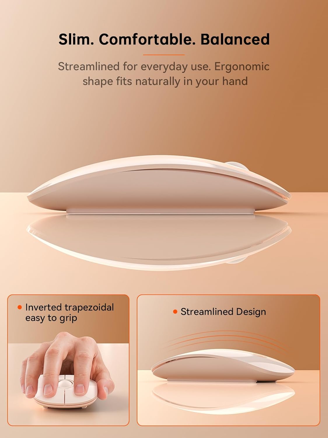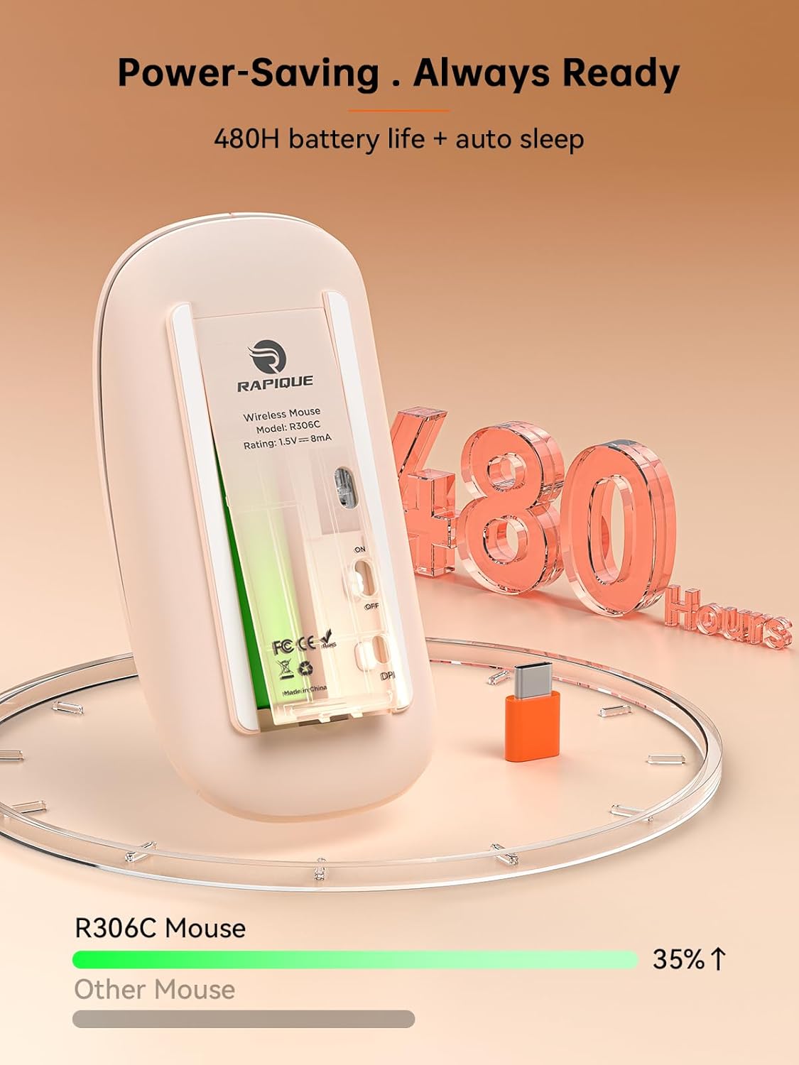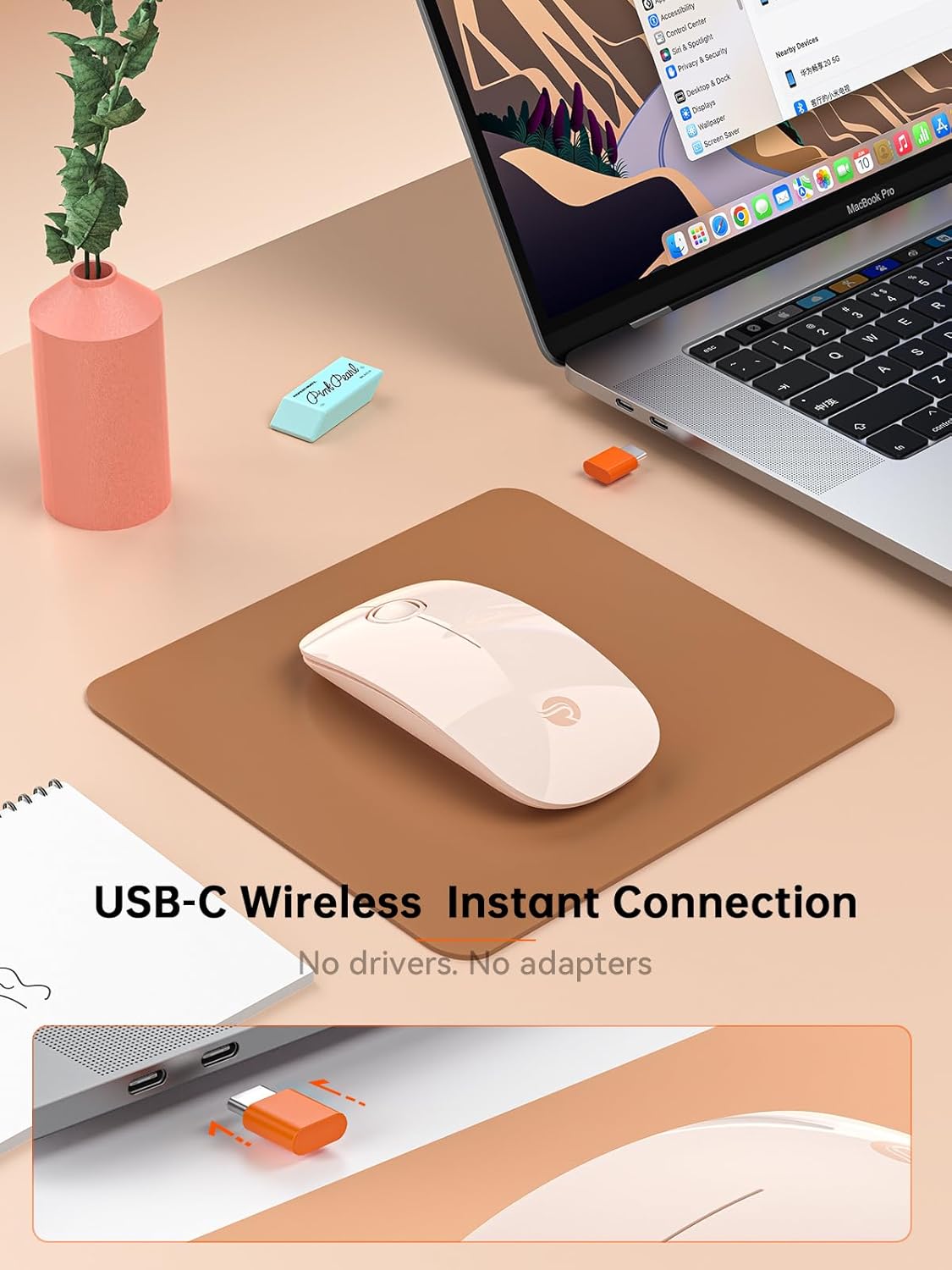 RAPIQUE R306C USB C Wireless Mouse, Type-C 2.4GHz Portable Computer Mouse, Silent Click, Ultra-Slim, 3-Speed DPI, 480 Hours Battery Life, for USB-C Laptops, MacBook, iPad, MacOS – Flesh Pink