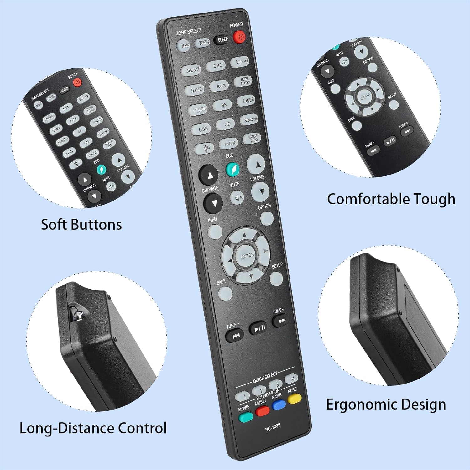 RC-1239 Remote Control Compatible with Denon Ultra Home Theater AV Receiver AVR-S760H AVR-X3800H AVR-X4700H AVR-X4800H AVR-S960H AVR-X8500H AVR-X2800H Replacement Controller
