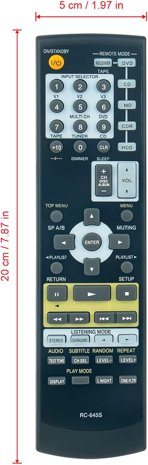 ECONTROLLY RC-645S Replacement Remote Control Compatible for Onkyo 5.1 Channel Home Theater Receiver HT-S4100 HT-SR700 TX-SR304 TX-SR404 HT-S4100S TX-SR304S TX-SR8440 HT-SR700S SKF-360FL TX-SR304E TX-SR304B SKF-360F R SKC-360C SKM-360SL SKM-360SR DS-A1XP SKW-460