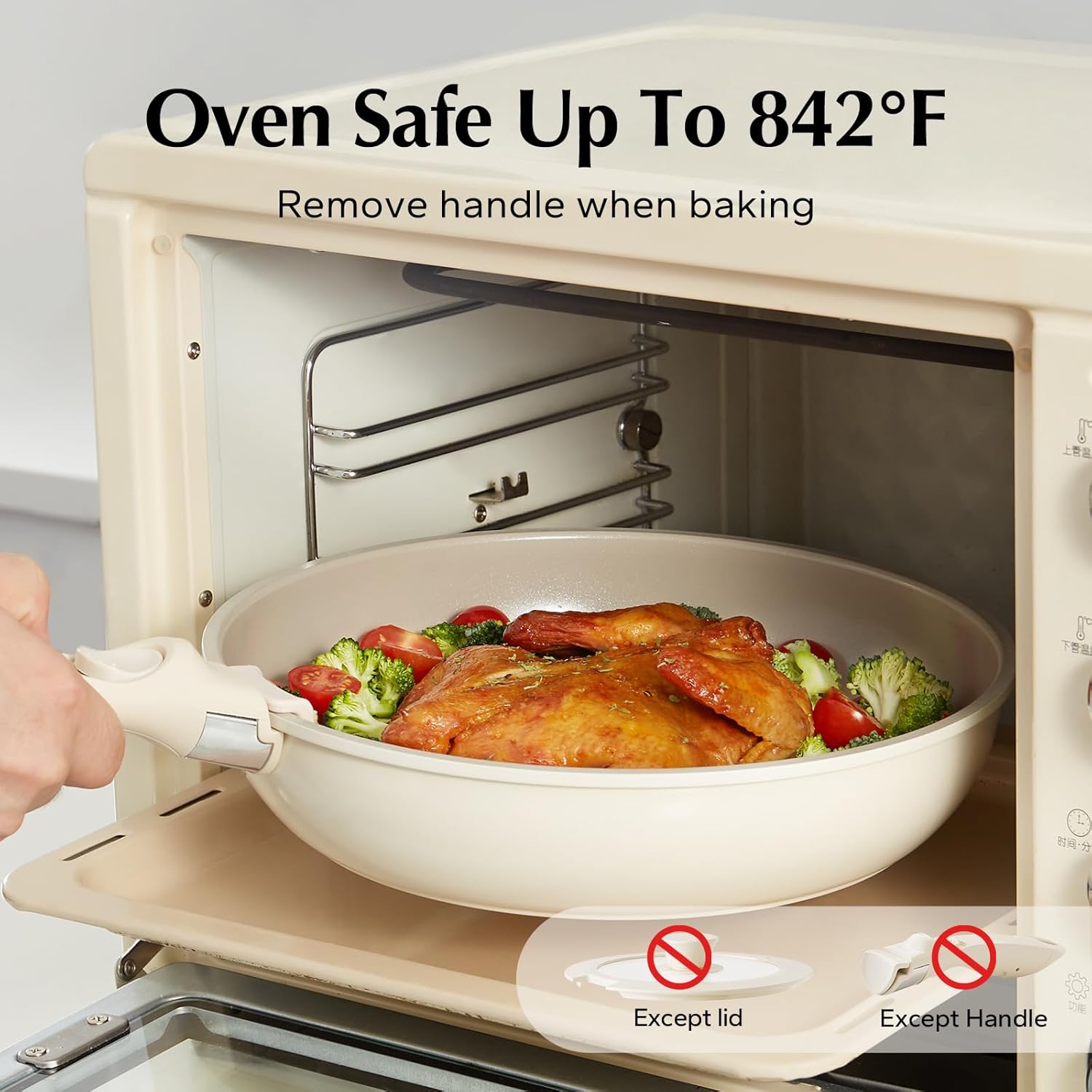 Ultimate Convenience: Removable handle for the ultimate versatility– go from ALL kinds of stoves to the oven, to the grill, to the fridge, and onto the table in one click; The handle’s detachability brings a new cooking style