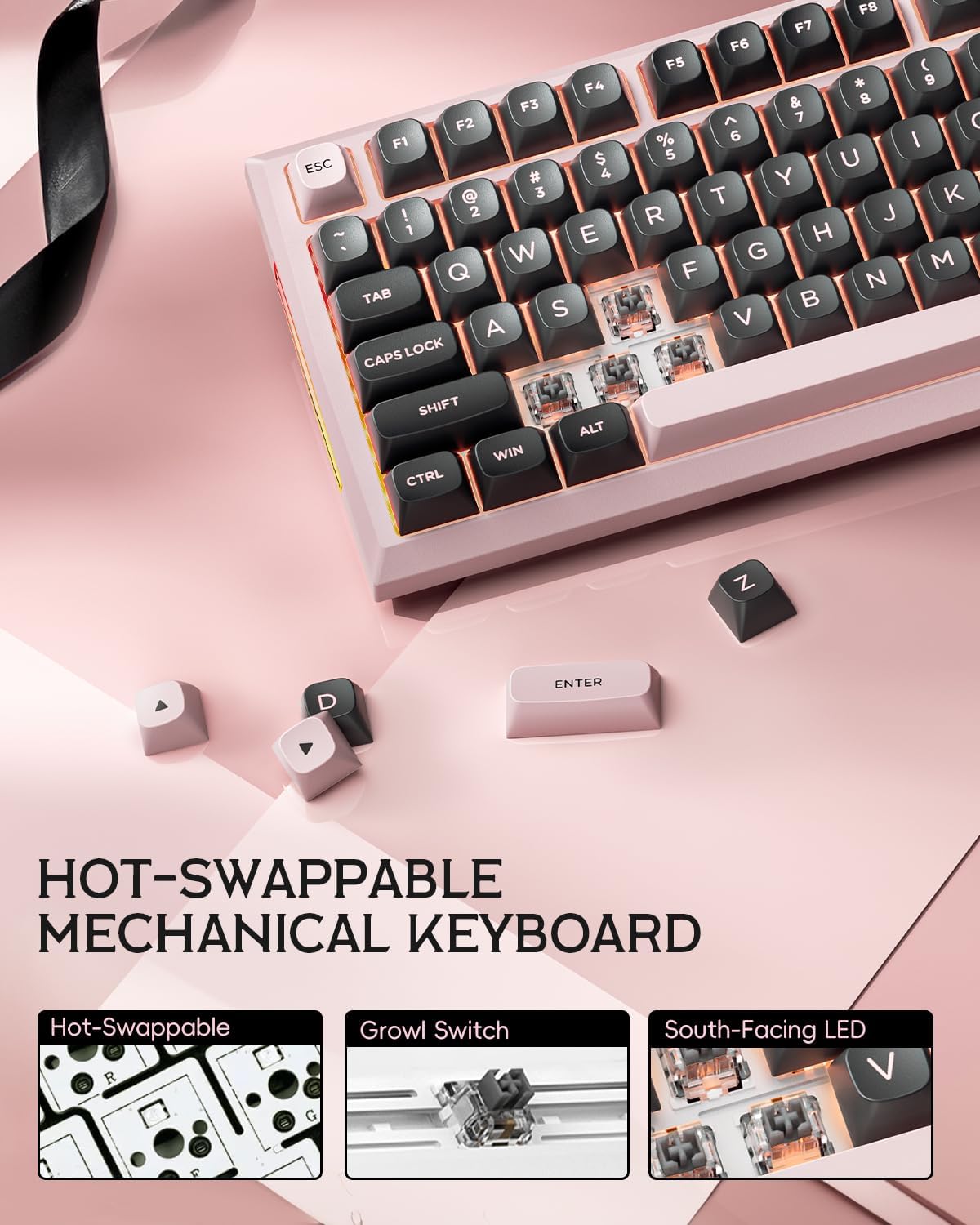 【Your DIY Customization Hub】Every key is hot-swappable, supporting both 3-pin and 5-pin mechanical switches. Easily swap out switches from brands like Gateron or Akko without any soldering, perfect for beginners and enthusiasts alike.