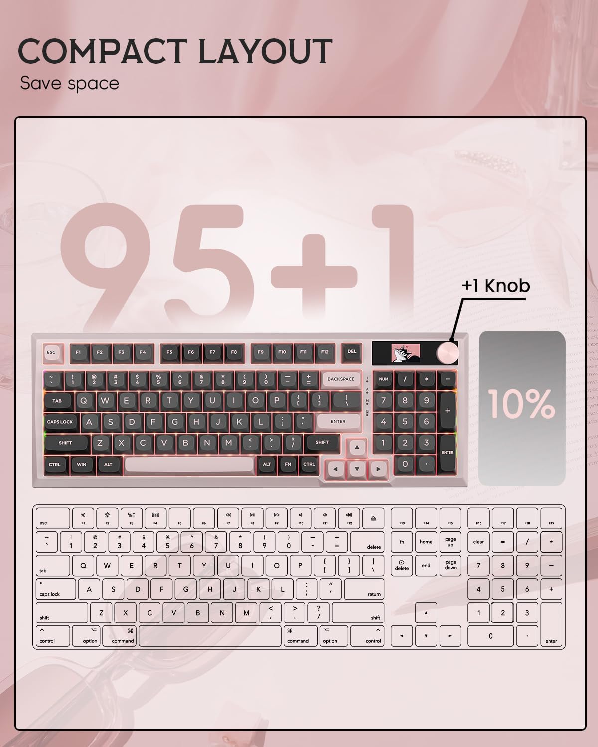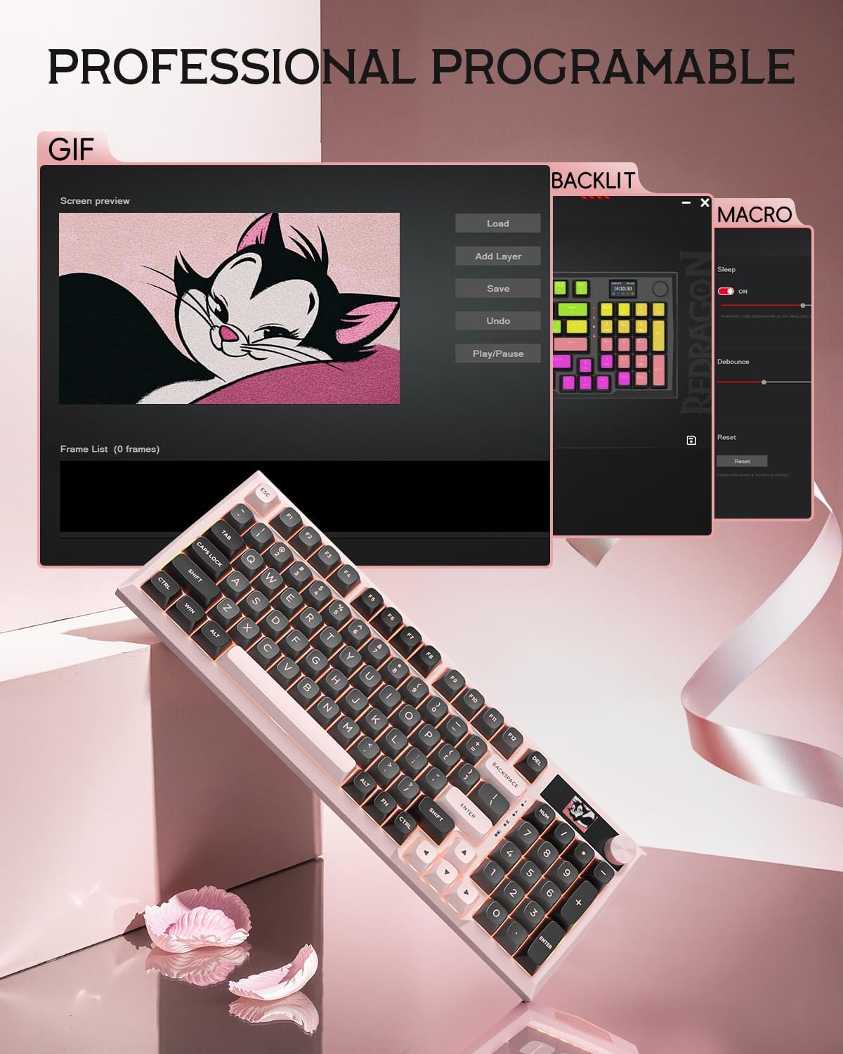 Redragon K725 Wireless Mechanical Keyboard, with LCD Smart Screen & Control Knob, Tri-Mode 2.4G/Bluetooth/Type-C, Hot-Swap Gasket Mount, RGB Backlit for Gaming/Mac/Windows/Tablet/PC