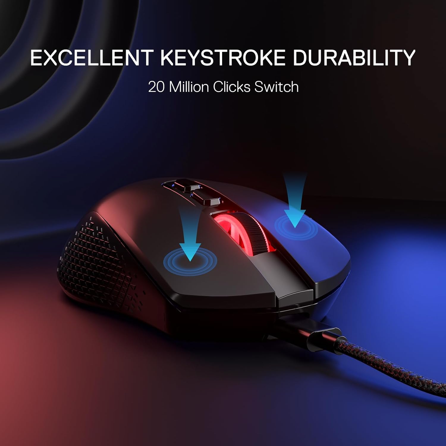 Extra Durability – Built to last, M695 gaming mouse features ultra-durable switches rated for over 20 million clicks, ensuring reliable performance through countless battles. Whether in fast-paced gaming or long work sessions, every click feels crisp, responsive, and consistent