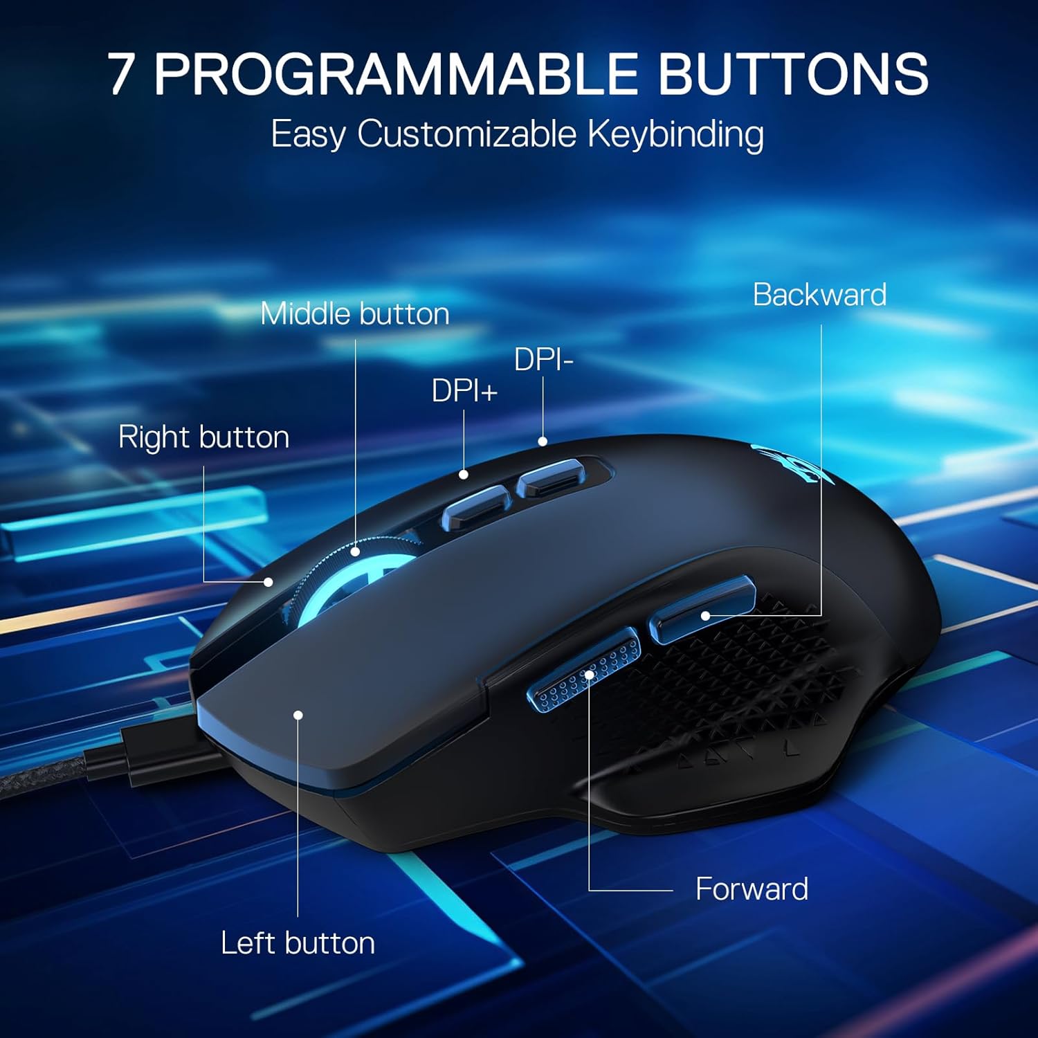 Uncompromised Driver Support – All buttons with hotkeys, media, DPI settings are all customizable with Redragon dedicated software. Pre-aim your opponents and get overwhelming to the victory in your exactly wanted way