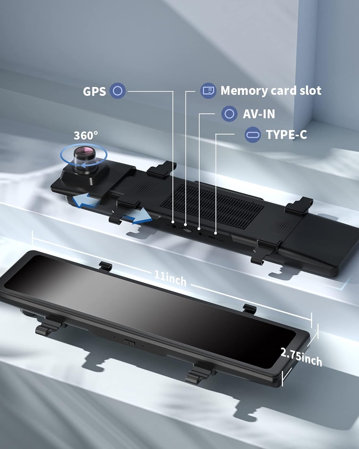 11” UHD TOUCH SCREEN – With upgraded technology, REDTIGER T27 streaming media mirror camera adopts an 11” UHD Touch Screen with 440×1920 resolution.170° front angle lens and 150°rear angle lens,minimizing the blind area of vision and capturing more scenes on the road.With the Intelligent screen split function of the rear view mirror cam,you can observe the dynamics of the vehicle’s front and rear in real-time while driving.You can operate any function directly on the touch screen.