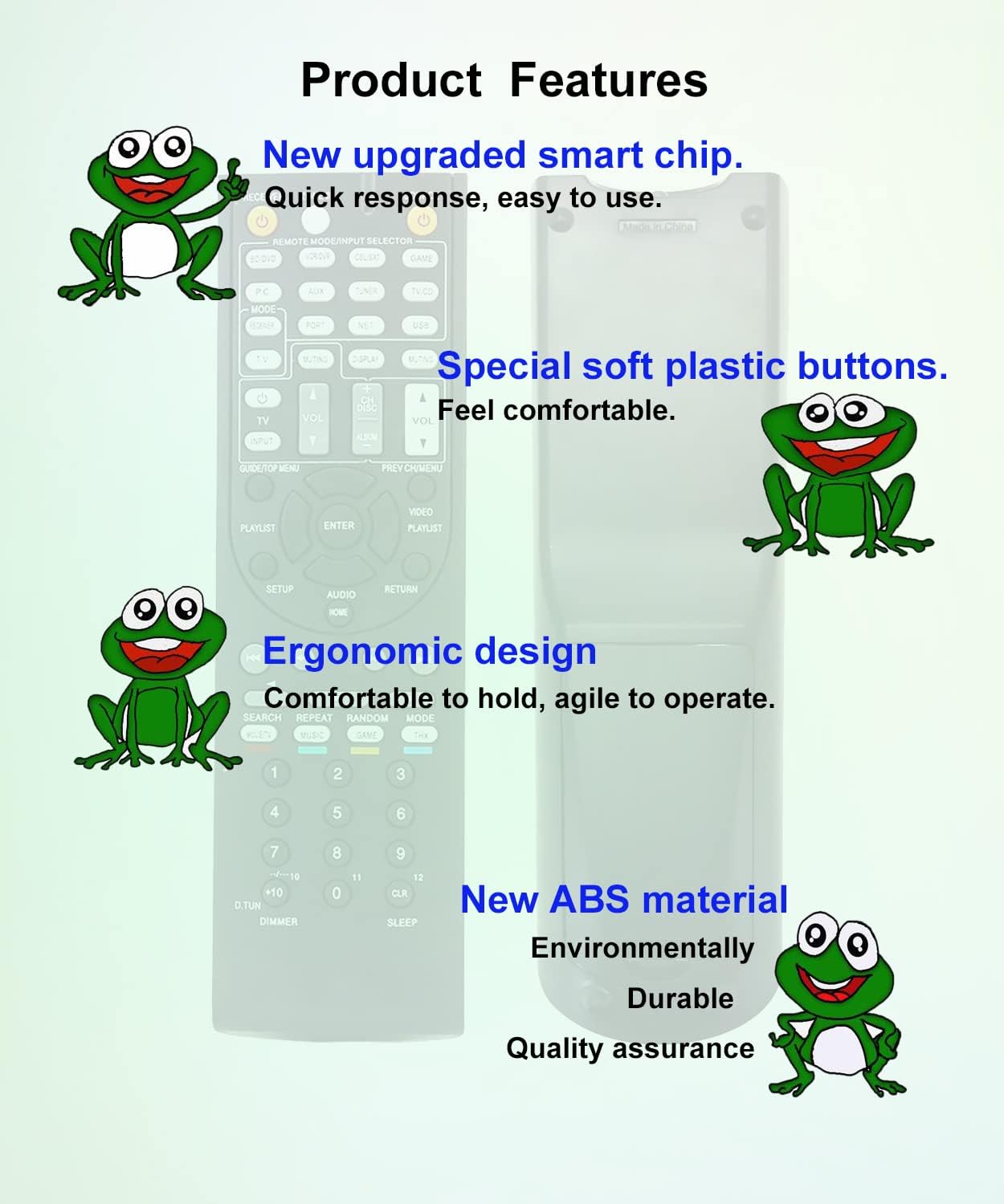 【Product Features】 Ergonomic design, comfortable to hold, agile to operate; Pre-Programmed, no program or set up required, just insert 2*1.5V AAA batteries to get it work; New ABS material, environmentally durable and quality assurance; Response quickly.