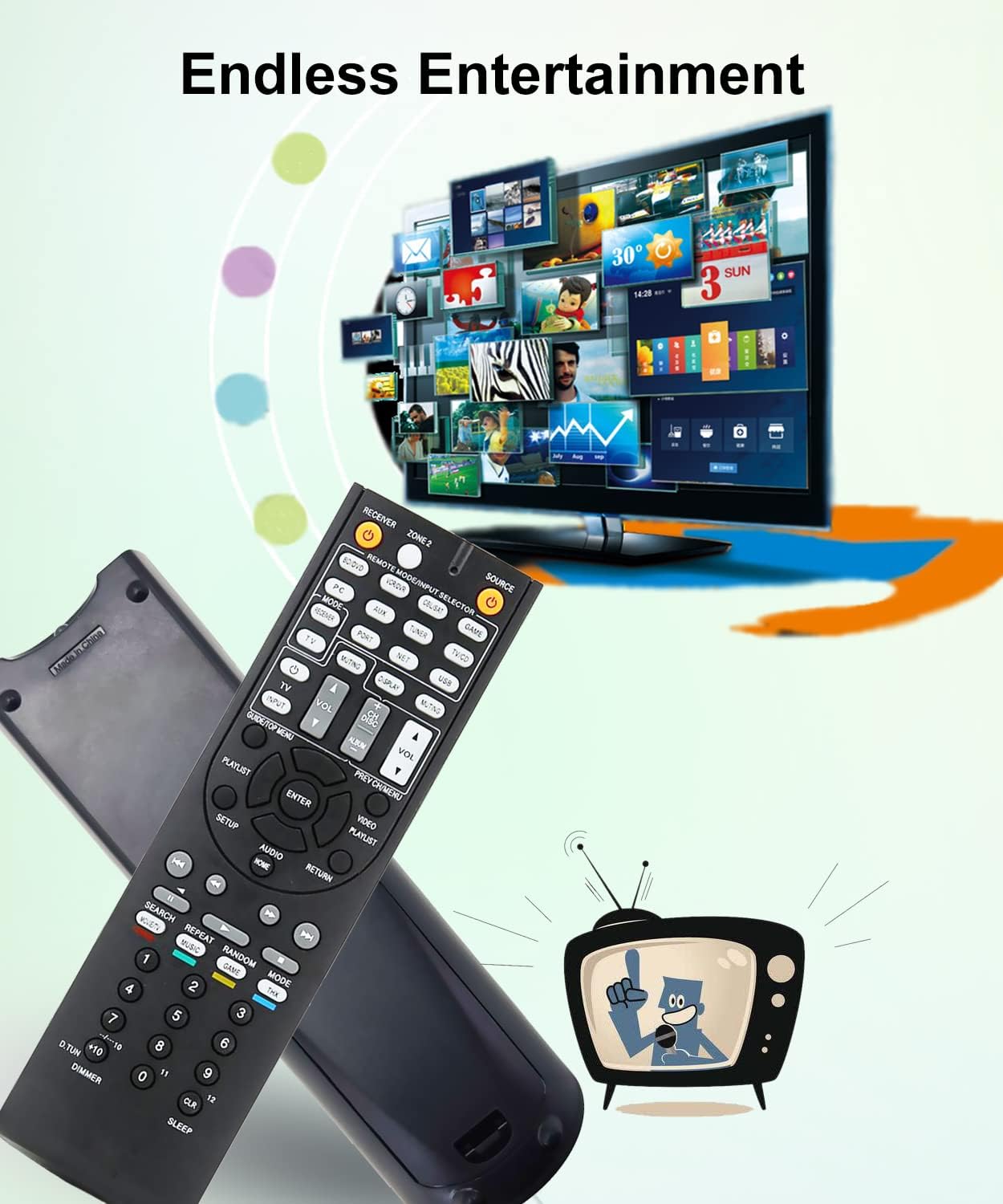 Replacement remote control universal for Onkyo HT-R393 HT-RC460 HT-R548 HT-R558 HT-R560 HT-RC560 HT-R580 HT-R590 HT-R591 HT-R592 TX-NR727 RC-837M TX-NR616 TXSR508 RC868M TXNR727 RC-765M TX-SR608 RC836M TXNR717 TX-SR508 RC-868M RC837M TXNR616 HTRC230 HTR290 HTRC330 HTR390 HTR391 HTR393 HTRC460 HTR548 HTR558 HTR560 HTRC560 HTR580 HTR590 HTR591 HTR592 HTRC660 HTR667 HTR693 HTR758 HTR791 HTR993 HTR990 HTR2295TXSR309 TXSR313 TXSR343 TXSR444 TXSR506 TXSR506S TXSR507 TXSR507S TXSR576 TXSR576S TXSR606 TXSR6B TXSR6S TXSR607 TXSR607S TXSR706 TXSR706S TXSR806 TXSR806S TXNR414 TXNR509 TXNR515 TXNR525 TXNR535 TXNR545 TXNR609 TXNR609B TXNR626 TXNR636 TXNR737 TXNR838 RC765M AVX-290 AVX-760 AVX-760LD HT-S3200 HT-S3300 HT-S3500 HT-S3700 HT-S5100 HT-S5100S HT-S5300 HT-S5400 HT-S5500 HT-S5600 HT-S6100 HT-S6100B HT-S6200 HT-S6300 HT-S7100 HT-S7200 HT-S7300 HT-S7409 HT-S7700 HT-S9700 HT-S8409 HT-RC160 HT-RC230 HT-R290 HT-RC330 HT-R390 HT-R391 RC-836M TX-NR717 TXSR608 HT-RC660 HT-R667 HT-R693 HT-R758 HT-R791 HT-R993 HT-R990 HT-R2295 TX-SR309 TX-SR313 TX-SR343 TX-SR444 TX-SR506 TX-SR506S TX-SR507 TX-SR507S TX-SR576 TX-SR576S TX-SR606 TX-SR6B TX-SR6S TX-SR607 TX-SR607S TX-SR706 TX-SR706S TX-SR806 TX-SR806S TX-NR414 TX-NR509 TX-NR515 TX-NR525 TX-NR535 TX-NR545 TX-NR609 TX-NR609B TX-NR626 TX-NR636 TX-NR737 TX-NR838 AVX290 AVX760 AVX760LD HTS3200 HTS3300 HTS3500 HTS3700 HTS5100 HTS5100S HTS5300 HTS5400 HTS5500 HTS5600 HTS6100 HTS6100B HTS6200 HTS6300 HTS7100 HTS7200 HTS7300 HTS7409 HTS7700 HTS9700 HTS8409 HTRC160 home theater audio av receiver system etc.