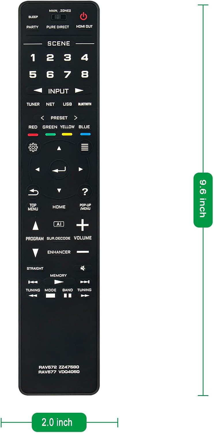 RAV572 ZZ47580 RAV577 VDQ4050 Replace Remote Control Compatible with Yamaha AVENTAGE 7.2 Channel AV Receiver