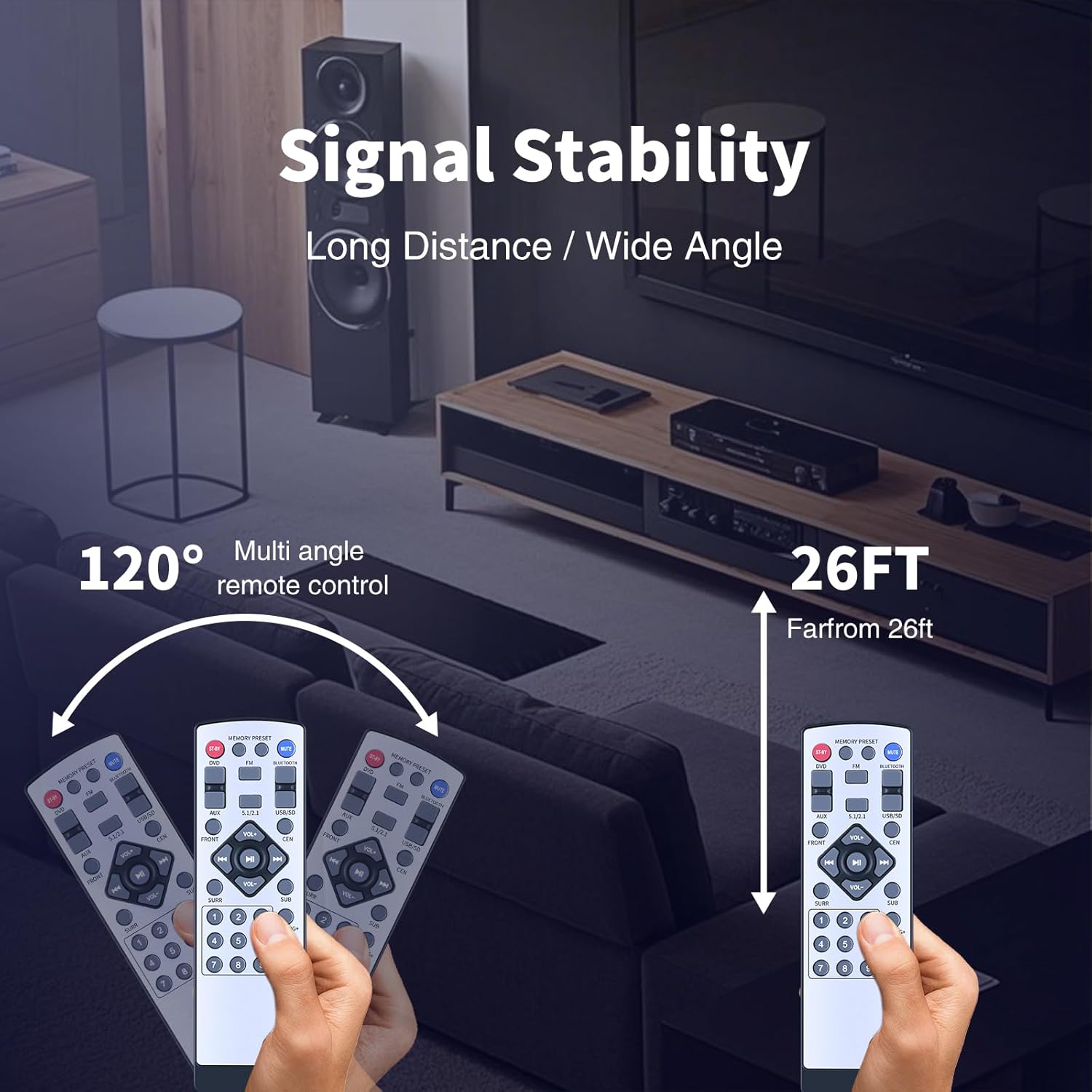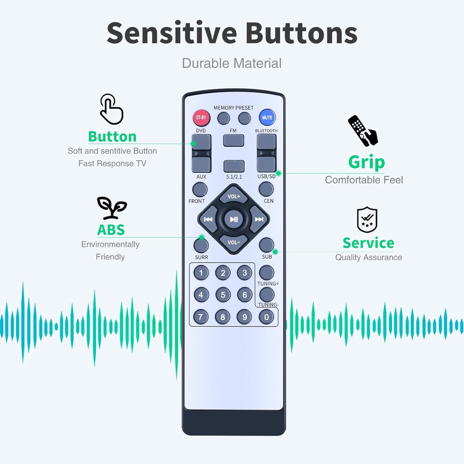 Plug-and-Play Simplicity – Ready Immediately:No setup required! Simply insert batteries and this remote will automatically sync with your 5.1 system. The perfect solution when your original remote is lost or damaged.