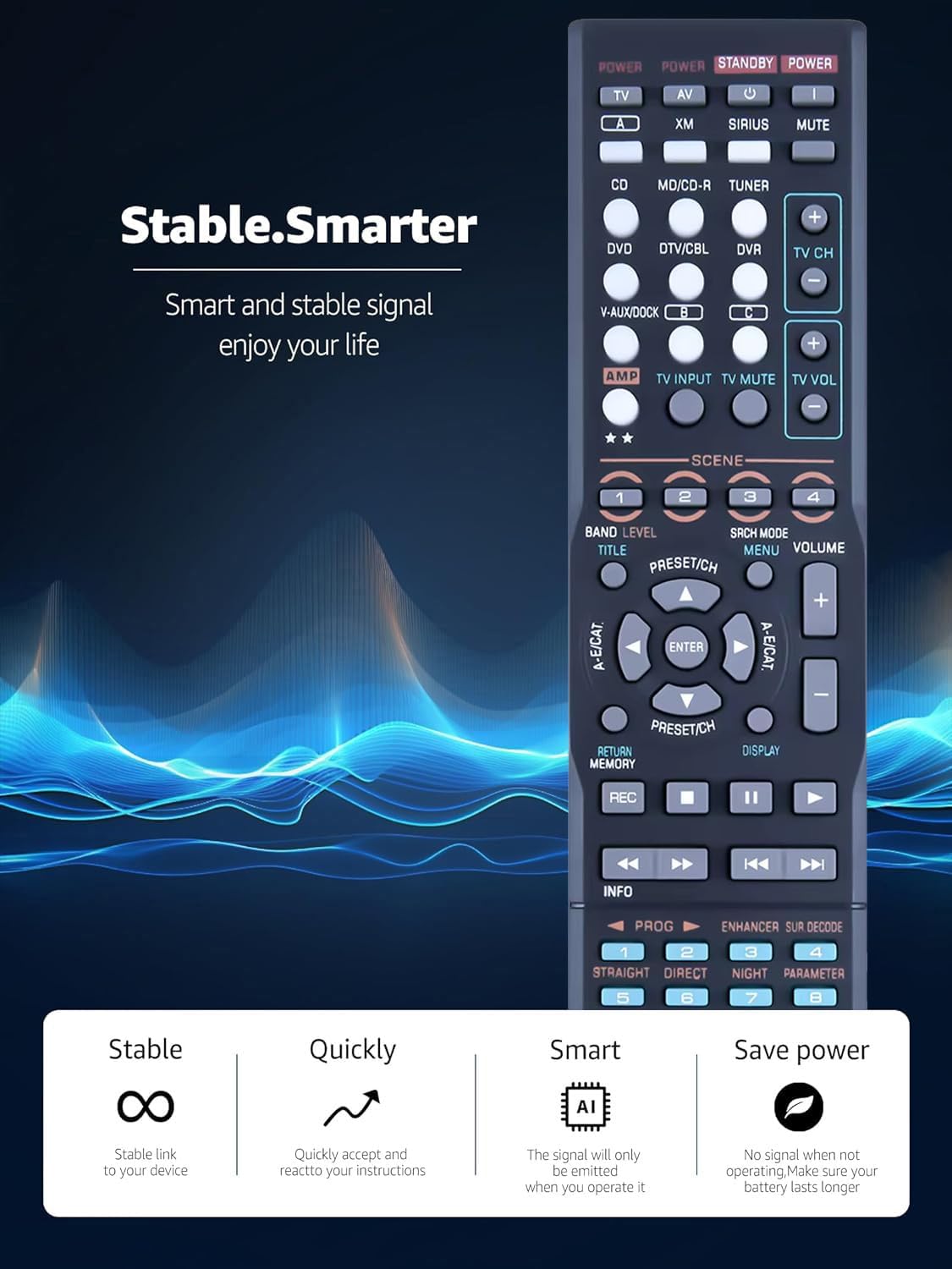 Stable Performance: Strongest Signal by Infrared Technology, Covers All the Functions of the Original Remote. Farther Transmitting Distance over 10 Meters/33 Feet. Fast Response: Soft Touch and Anti-dusted Buttons. Fastest Response Not over 0.2 Second. Supports over 150,000 Clicks Approved by Tests.