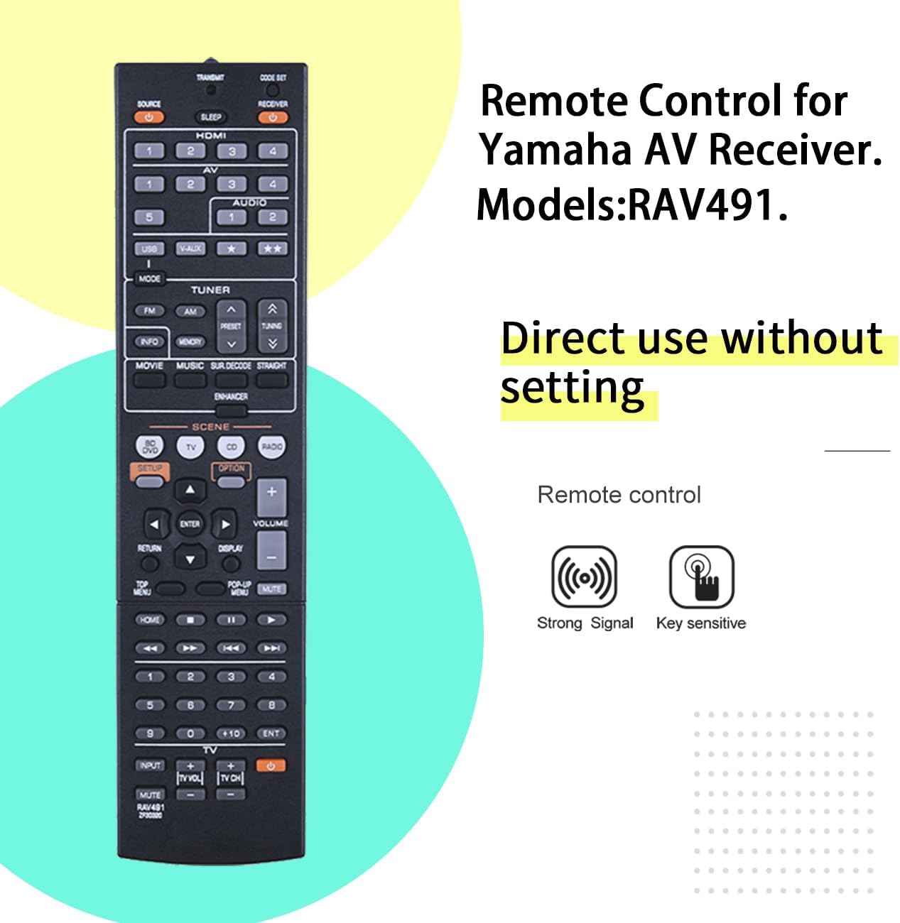 Replacement Remote Control RAV491 ZF30320 Fit for Yamaha YHT-399U HTR-5063 RAV293 RAV331 RAV334 RX-V467 RX-V367 RX-V371 AV A/V Receiver