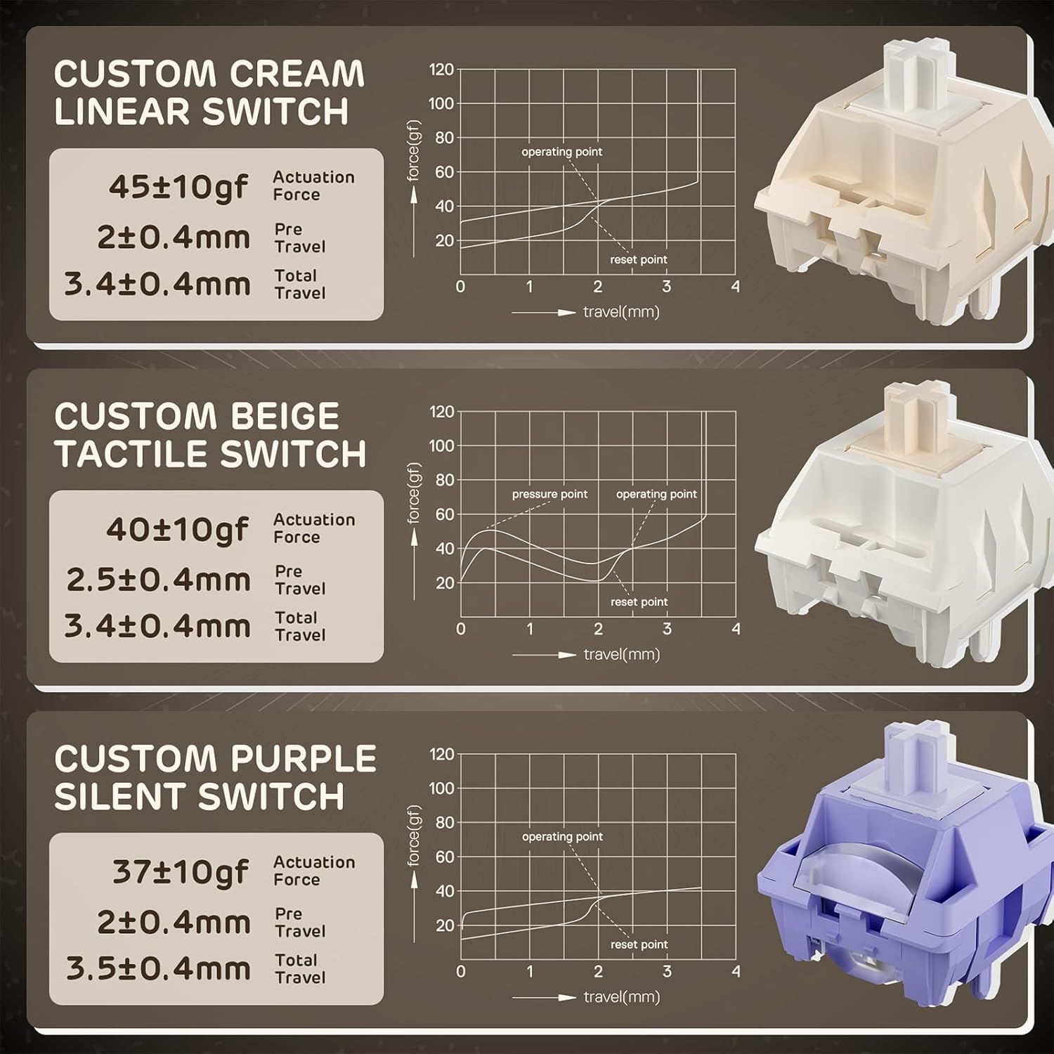 RK Tactile Beige Switch features an obvious bumping and soft click sound, perfect for those seeking auditory enjoyment and obvious typing feedback.