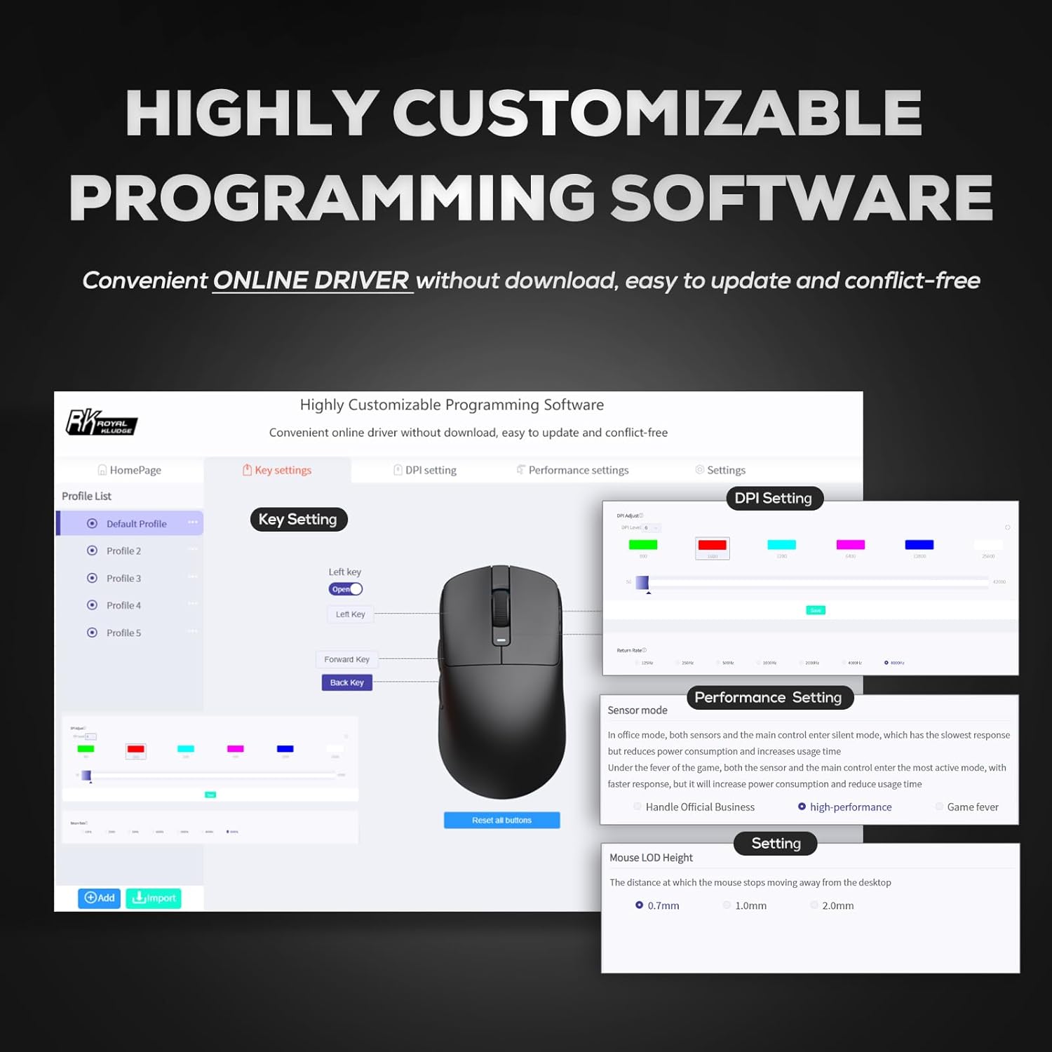 5 Programmable Buttons & Highly Customizable: Through the online driver, M3 wireless mouse can be customized with onboard memory 6-level DPI presets (50-42,000), polling rates, programmable buttons and configurations, etc