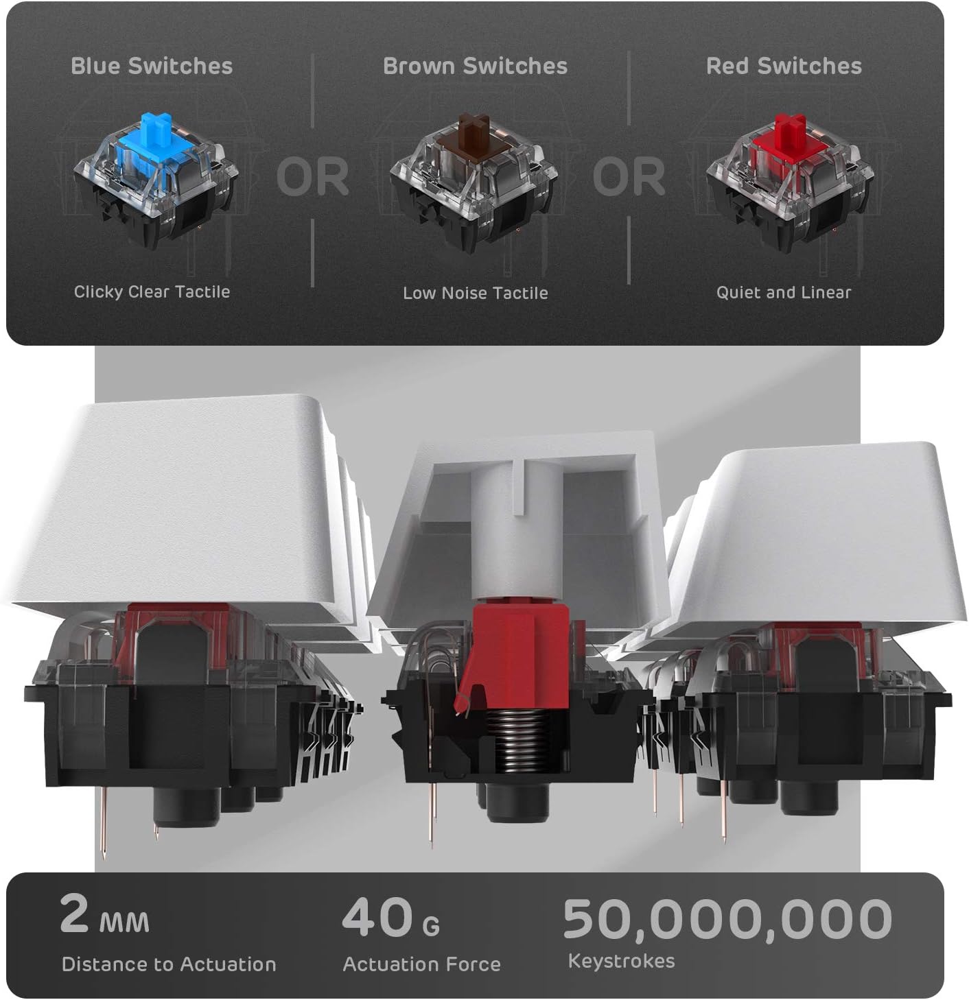 Friendly Brown Switch: Compromises both tactile and low noise two supreme merits and offers you the most friendly and satisfying experience.