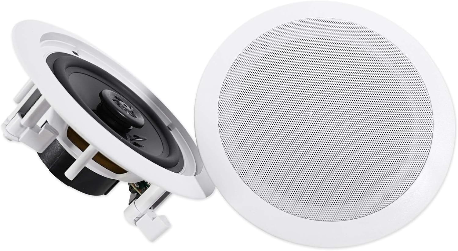 High Quality Spring Loaded Push Terminals. Aim-able Swivel Tweeter. Paintable Flush Mount Grills. Frequency Response: 60Hz – 20KHz. Sensitivity: 89dB @ 1w / 1m. Impedance: 16 Ohm. Mounting Depth: 2.91″. Cut-out Diameter: 7.6″. Color: White (paintable) Huge PowerThe RPA60BT is loaded with 1,000 Watts of power! When manufacturing this item we upgraded the power of the amplifier. We tested these against similar items on the market and these significantly outperformed the others rated at 2000 and 3000 watts.