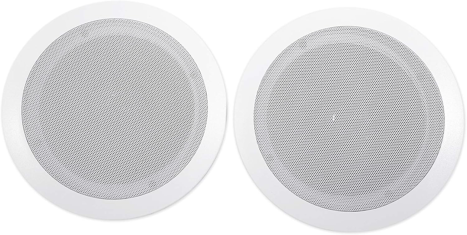 Dimensions with rack ears (W x D x H): 19″ x 12.25″ x 3.5″ inches. Dimensions without rack ears (W x D x H): 17″ x 12.25″ x 3.5″ inches. Pair of Rockville HC655-16 6.5″ White 500 Watt 2-Way In-Ceiling Home Theater Speakers. Peak Power Handling: 250 Watts (per speaker) / 500 Watts (per pair). RMS Power Handling: 80 Watts (per speaker) / 160 Watts (per pair). Polypropylene Cone. Rubber Surround. 6.5″ Woofer. 1″ Aluminum Voice Coil. 1/2″ Mylar Dome Tweeter. 10 oz. Ferrite Magnet