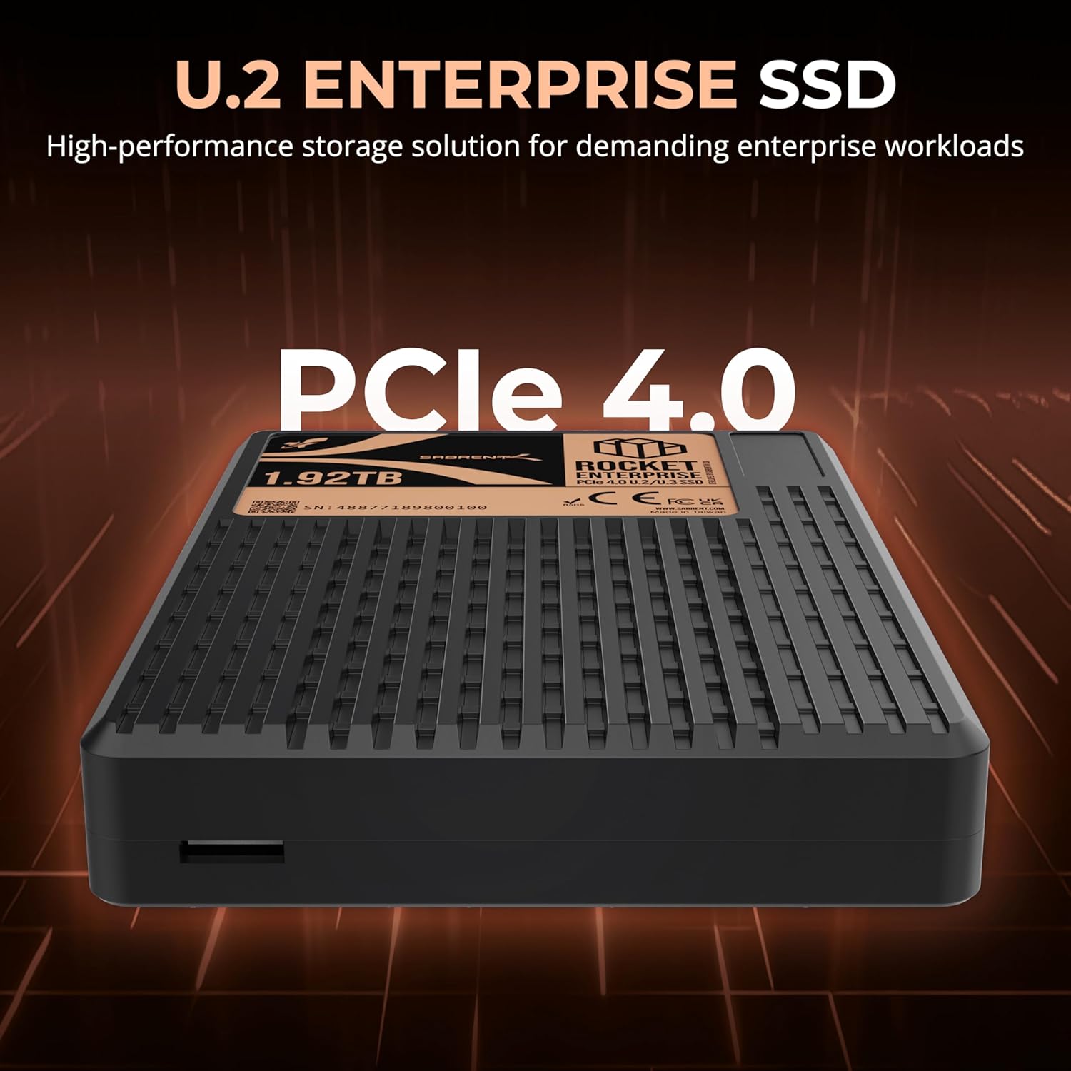 Enterprise-Class U.2 NVMe SSD: The Rocket Enterprise PCIe 4.0 U.2 SSD (SB-P4U2) is engineered for high-performance enterprise workloads. Delivers consistent performance with advanced thermal and power loss protection.