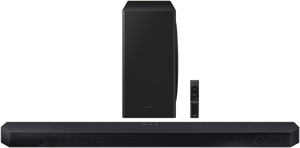 A smart Soundbar with realistic, multi-dimensional spatial audio optimized specifically for your space and strong up-firing speakers built in. ¹Q-Symphony requires a compatible 2020-2024 Samsung TV. ²Compatible with select 2022-2024 Samsung TVs. ³Content Services may vary by region & are subject to change without notification. Amazon, Alexa, and all related logos are trademarks of Amazon.com, Inc. or its affiliates. ⁴This service is provided by Google and can be terminated at any time. Some features and functions provided by connected devices may be limited or not be supported to use. Content Services may vary by region & are subject to change without notification. ⁵This Samsung Soundbar supports AirPlay2 and requires iOS 11.4 or later. Apple, and AirPlay are trademarks of Apple Inc., registered in the U.S. and other countries. ⁶SpaceFit Sound Pro is compatible with 2023- 2024 Samsung QLED TVs (Q70 models and above) and OLED TVs. ⁷Compatible with Gaming Hub and select gaming consoles (e.g. Xbox X, PS5). Game console sold separately.