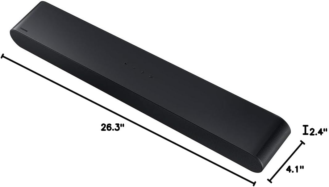 Samsung S-series All-in-one 5.0ch. Wireless Dolby ATMOS Soundbar Product Highlights: – Unlock audio all-around-you with this compact soundbar’s powerful 5-channel sound with built-in woofers. – Pair a Samsung TV with a Samsung Soundbar to unlock a new level of powerful audio. Experience content like never before. – Skip the HDMI cables and enjoy truly elevated audio with Wireless Dolby Atmos. – Connect and control everything with our soundbar that integrates your favorite smart services. Product Features: ALL-IN-ONE 5.0 CH DOLBY ATMOS Unlock audio all-around-you with this compact soundbar’s powerful 5-channel sound with Dolby Atmos. The built-in woofers deliver deep seat-shaking bass. Q-SYMPHONY1 Pair a Samsung TV with a Samsung Soundbar to unlock a new level of powerful audio. Experience content like never before only with Samsung products. WIRELESS DOLBY ATMOS2 Skip the HDMI cables and enjoy truly elevated audio with Wireless Dolby Atmos. Experience captivating audio without the cable clutter. SMART INTEGRATION3 Connect and control everything with our soundbar that integrates your favorite smart services like Built-in Alexa, Chromecast, Airplay 2 and more. SPACE FIT SOUND PRO Get room-filling sound calibrated to your space, with a soundbar that analyzes your environment and automatically optimizes the audio accordingly. ADAPTIVE SOUND Hear voices better, even at low volume, with intelligently optimized audio. GAME MODE PRO4 Unlock a more intuitive gaming experience with 3D optimized sound. ACTIVE VOICE AMPLIFIER To ensure dialogue is not drowned out, Active Voice Analyzer breaks down room noise so that onscreen voices are always optimized.