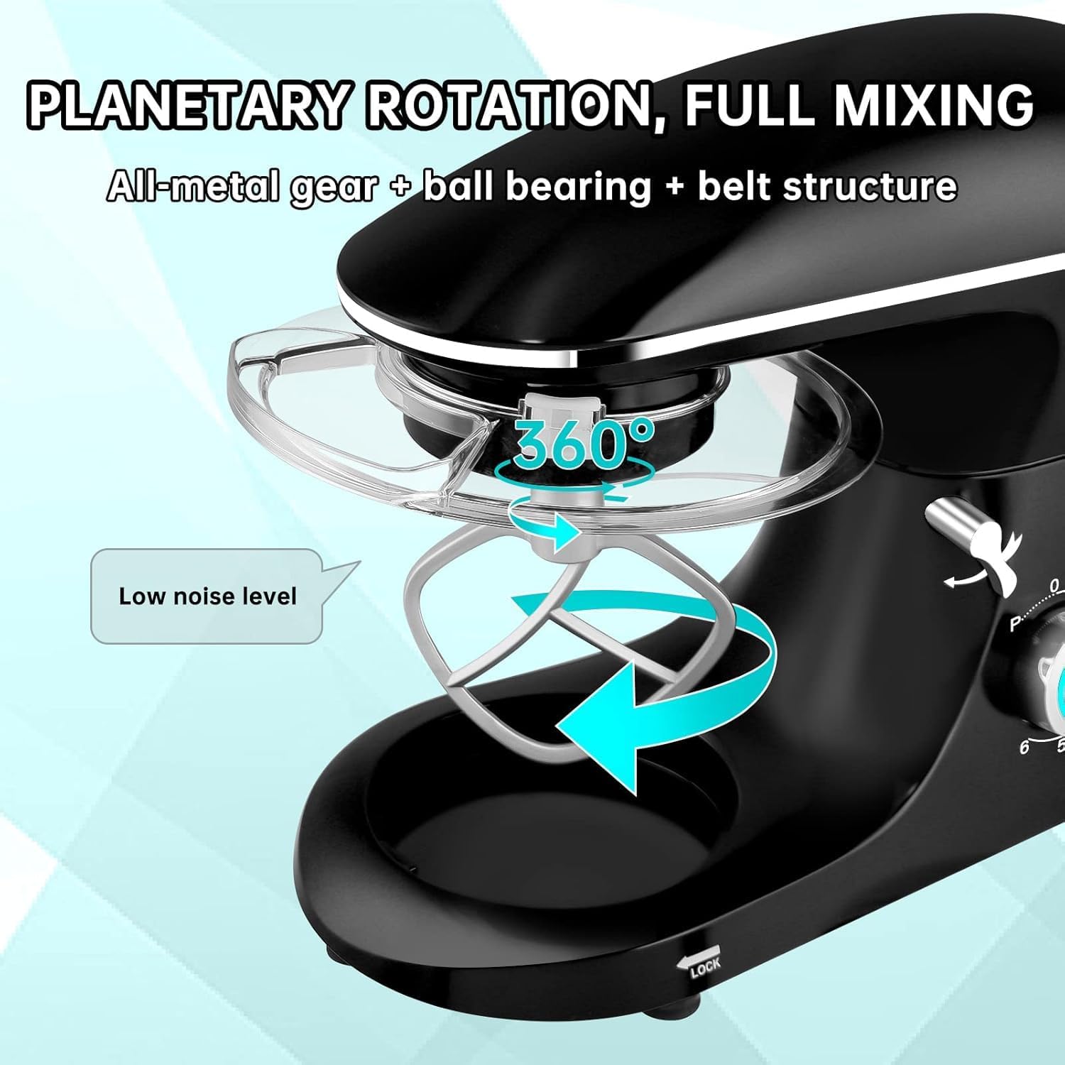 【660W MOTOR & 6 SPEEDS OPTION】SEEDEEM kitchen stand mixer with 660W high-performance motor but lower operation noise.By turning the gear knob, you can select 6 different gear speeds to choose the desired mode. The machine can stably operate from low to high speed mixing at a constant speed. Multiple gears and speeds ensure you can choose any delicious food you want.