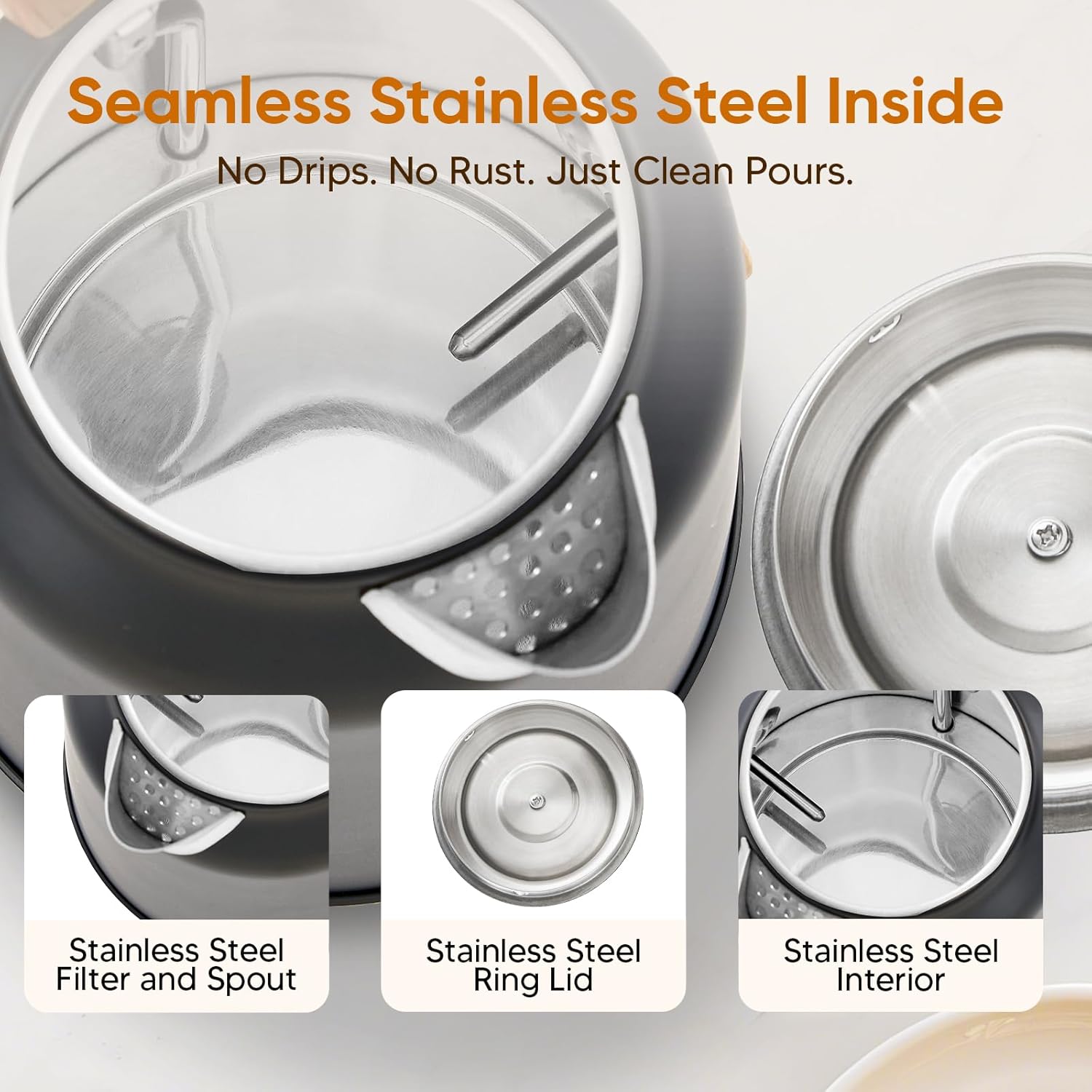 【Safe & Durable 304 Stainless Steel】 – Crafted with food-grade steel, this hot water kettle electric ensures no plastic touches water. Its seamless design prevents leaks, while the stainless spout filter keeps every pour pure and smooth. Built to last, this kettle delivers confidence with every use.