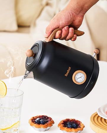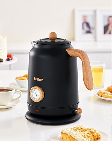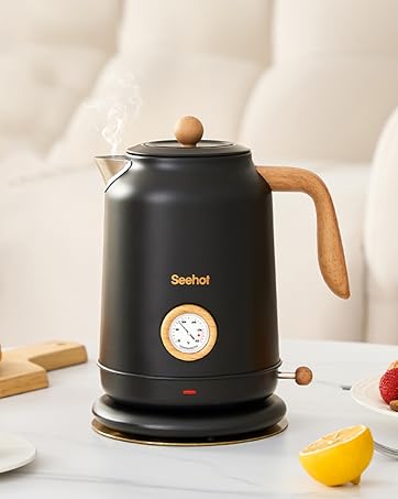 【Precision Brewing with Built-in Thermometer】 – Unlike a basic Electric tea kettle, this retro-inspired design features a physical temperature gauge, allowing tea lovers and coffee enthusiasts to monitor water heat in real time for perfect flavor. Elevate your daily brewing with accuracy that makes every sip memorable