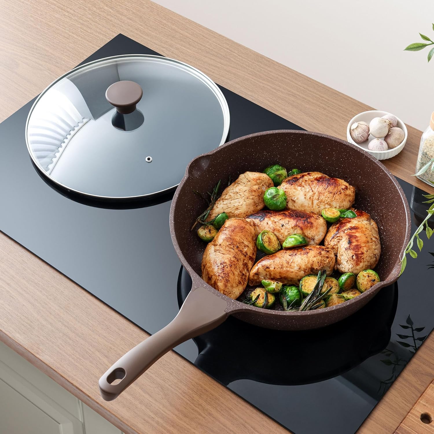SENSARTE Nonstick Deep Frying Pan Skillet, 12-inch Saute Pan with Lid, Stay-Cool Handle, Healthy Cookware Cooking Pan with Cover, Induction Compatible (Toffee Brown)